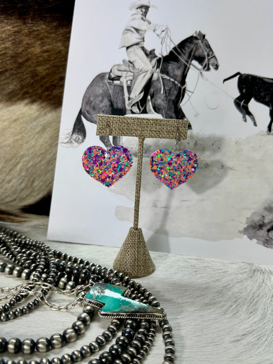 Bleeding Glitter Heart Earrings