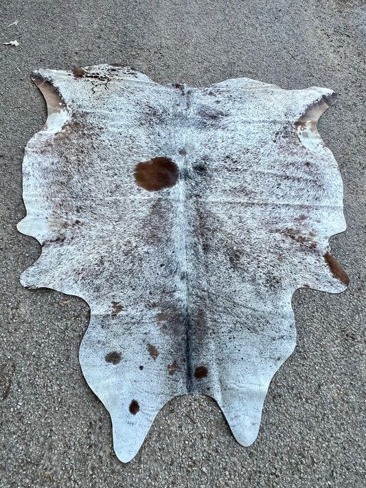 Brown/White Salt & Pepper Cowhide Rug 7X6.5'