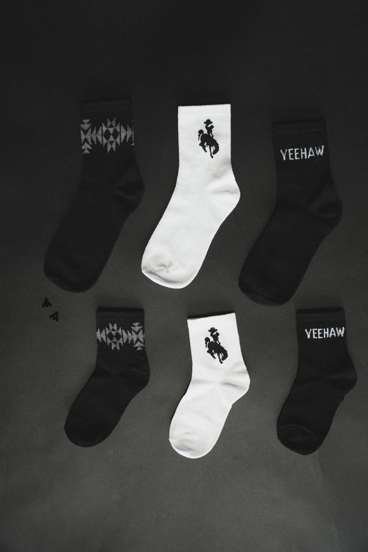 CACTUS ALLEY- BROKE ASS RANCH BLK/WHITE PERFORMANCE SOCKS