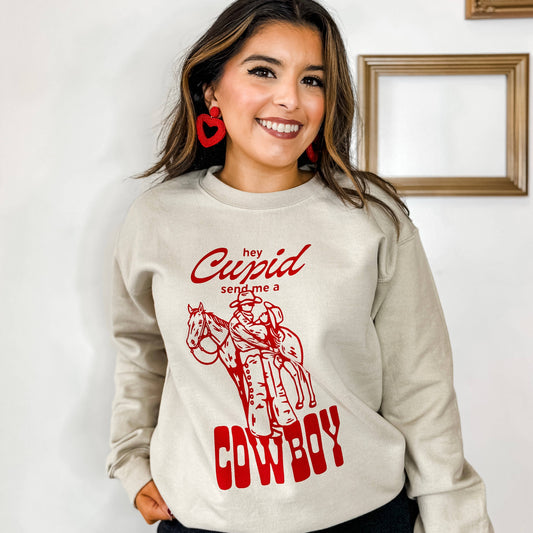 Hey Cupid Cowboy Crewneck Sweatshirt, Valentine's Day Shirt