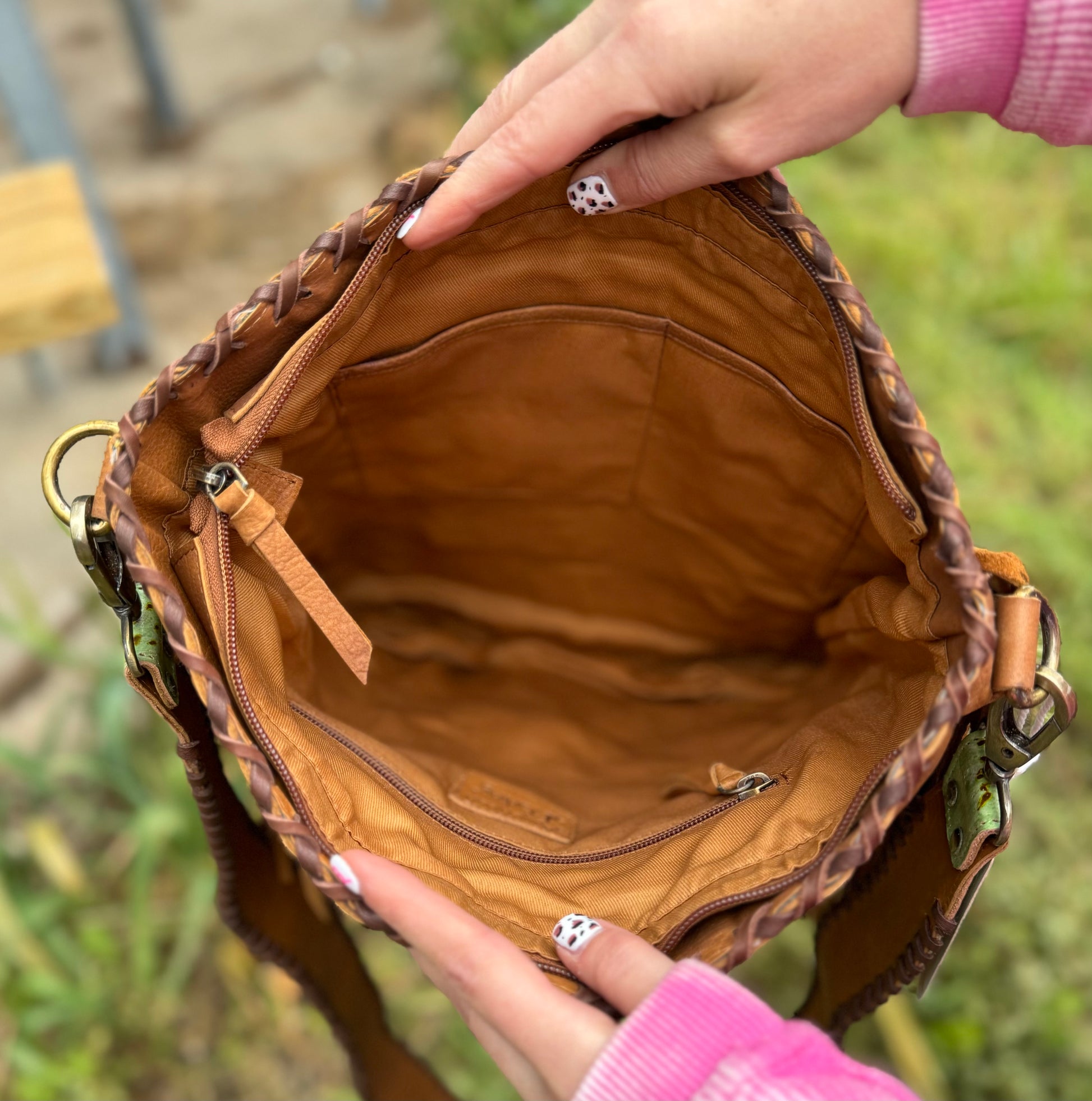 Adjustable genuine leather shoulder strap.