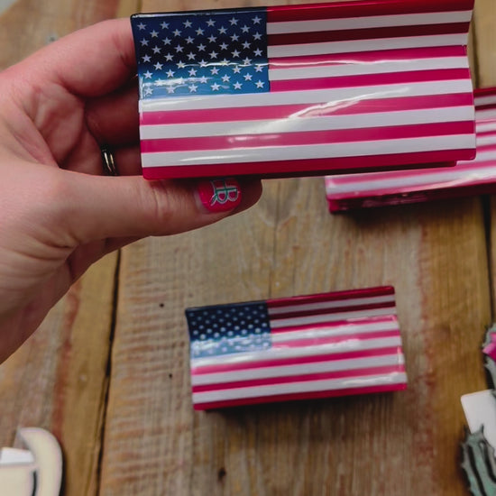 Demonstrate your patriotism with this stunning American Flag Hair Clip. Boasting excellent craftsmanship, vibrant hues, and proudly made in the USA and supporting American Farmers.