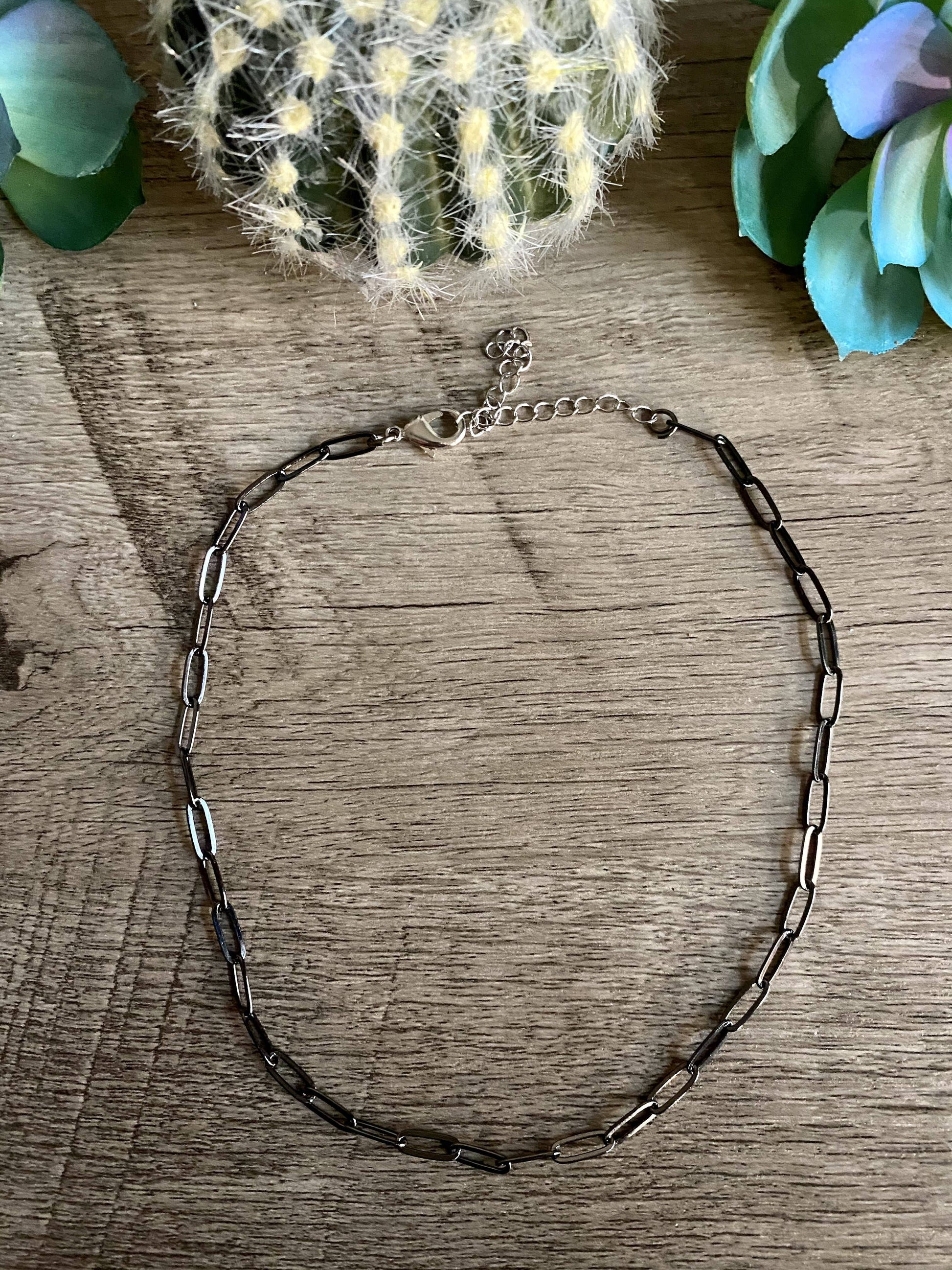 14 inch choker made of black plated steel that will last a lifetime. Perfect for layering or making it the statement piece!