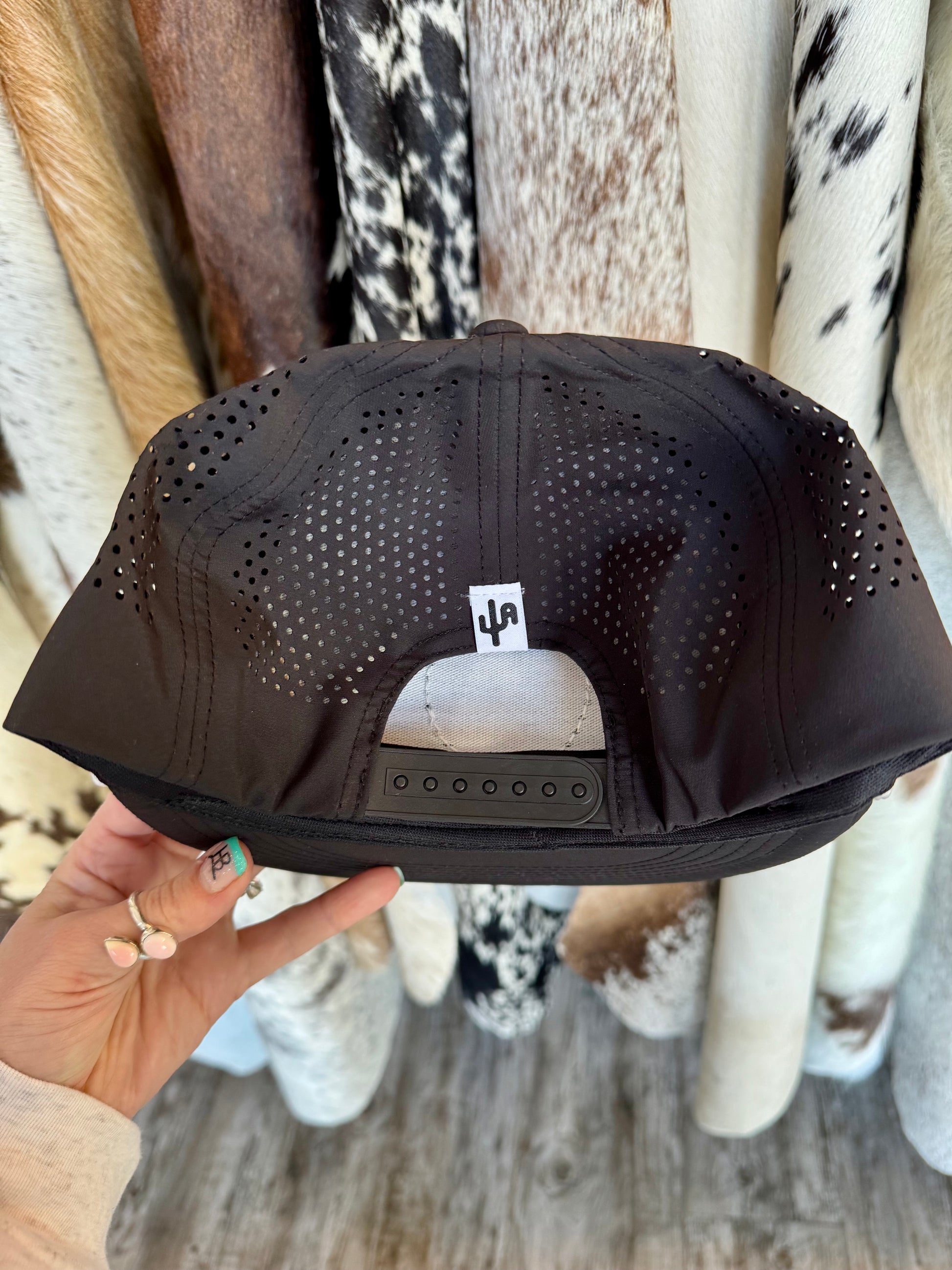CA black laser holes/white rope, SnapBack cap (2025)