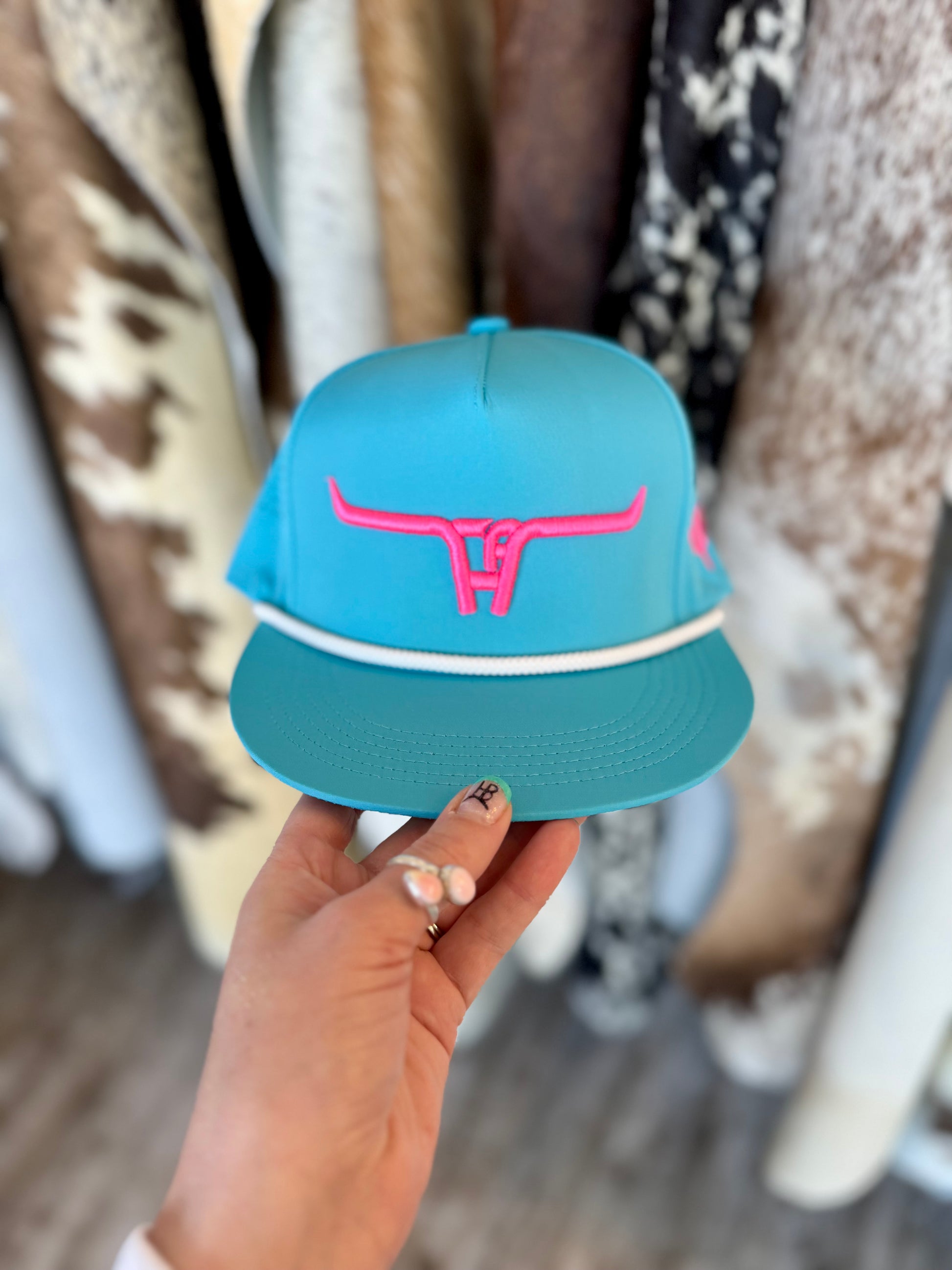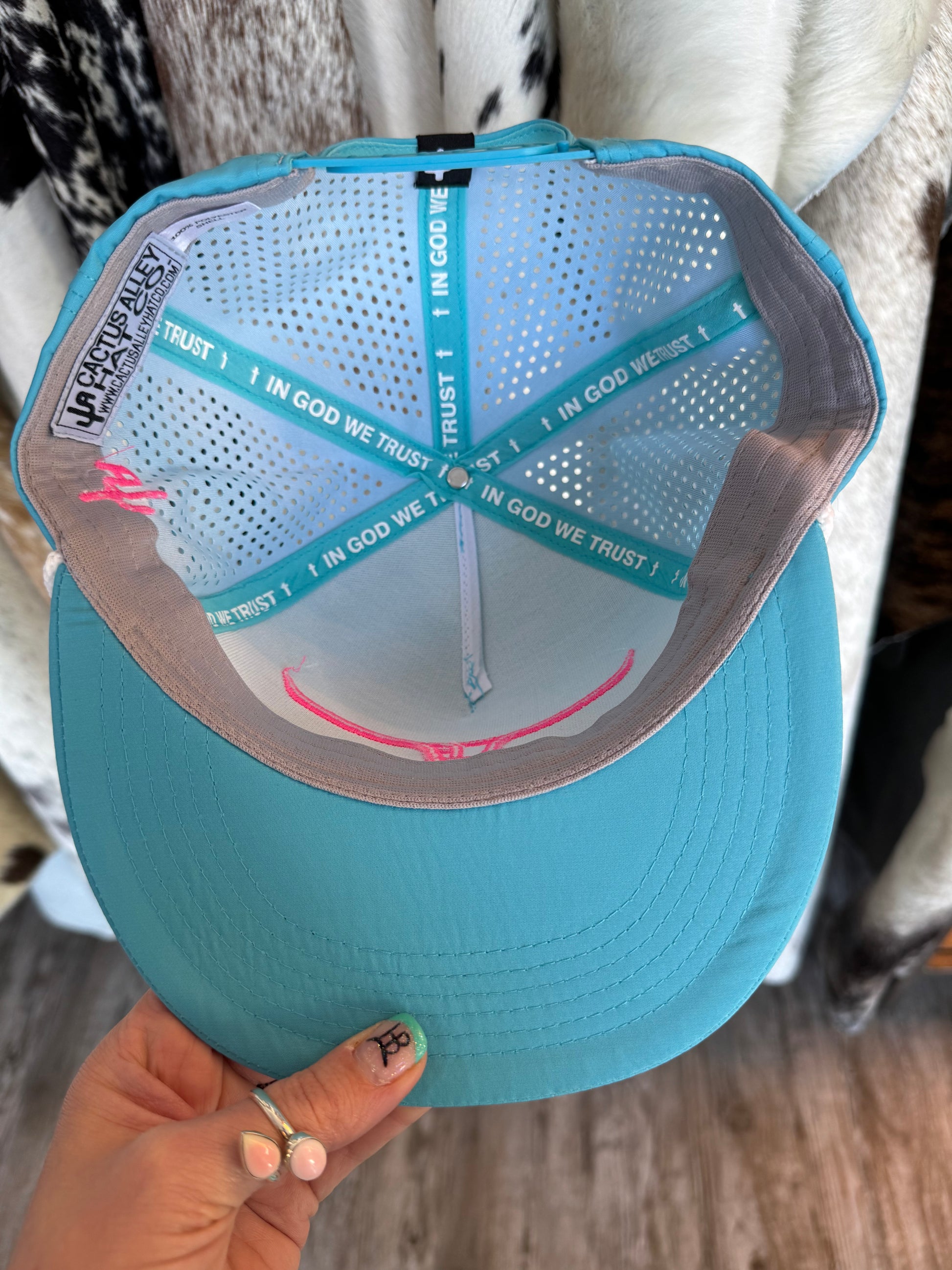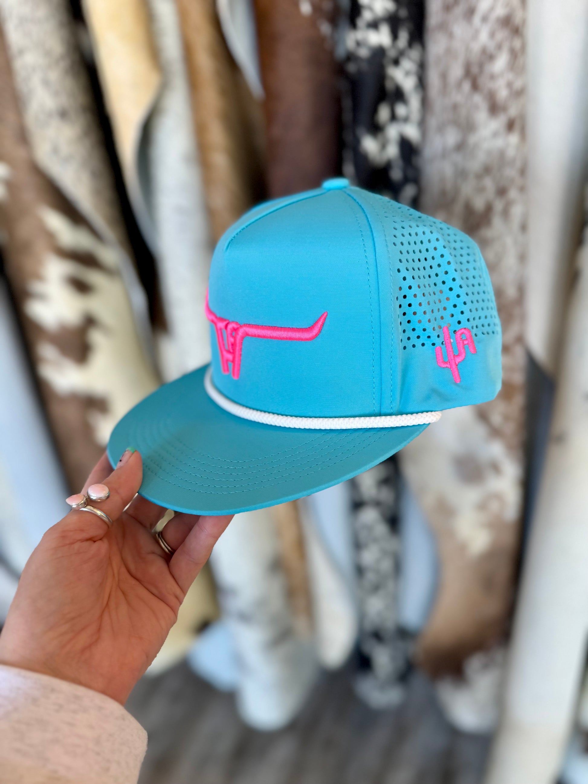 CA Turqouise Laser Holes/White Rope SnapBack cap (2025)