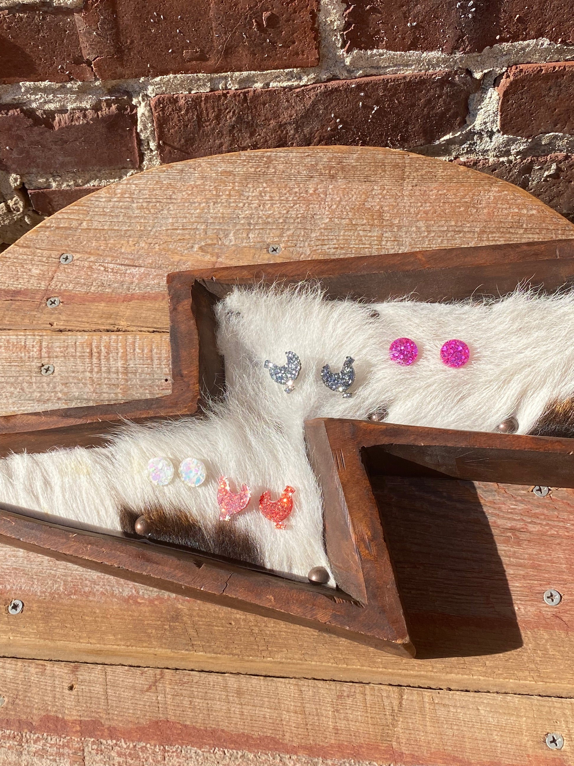 2 pairs of stud earrings per card. The perfect size for you or your littles.