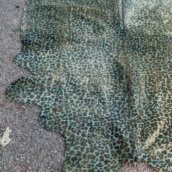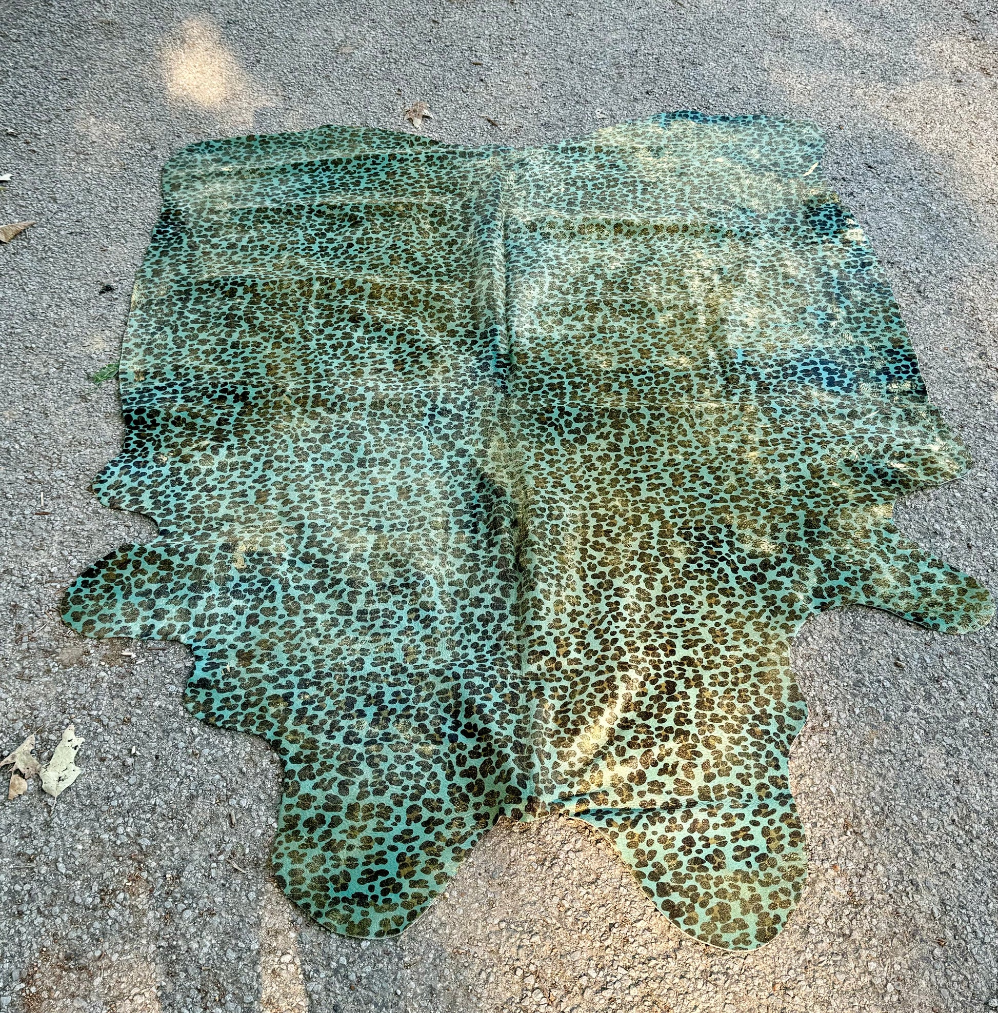 Acid Washed Leopard Turquoise/Gold Cowhide Rug