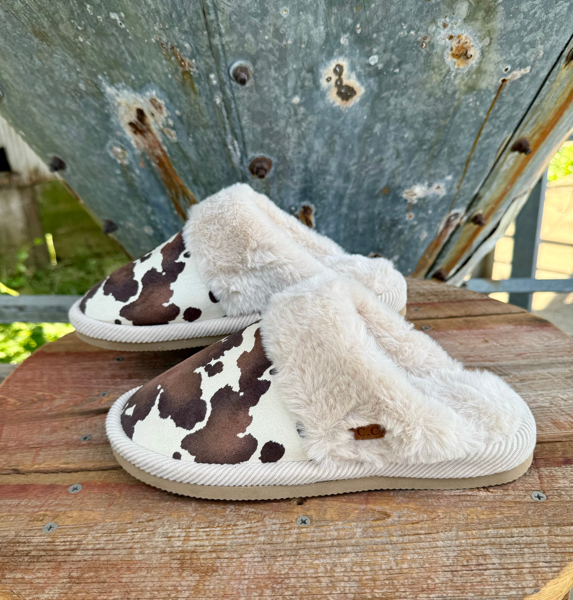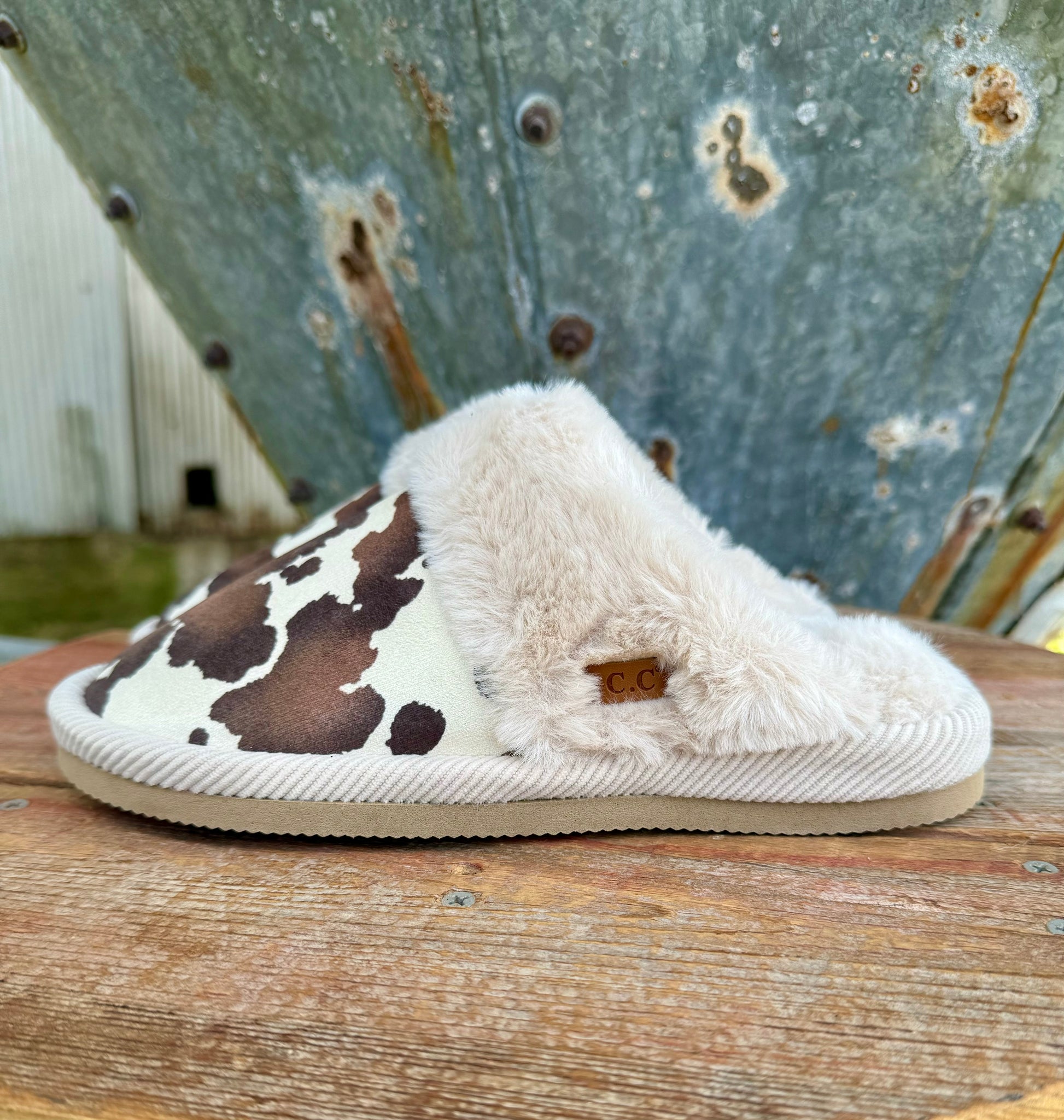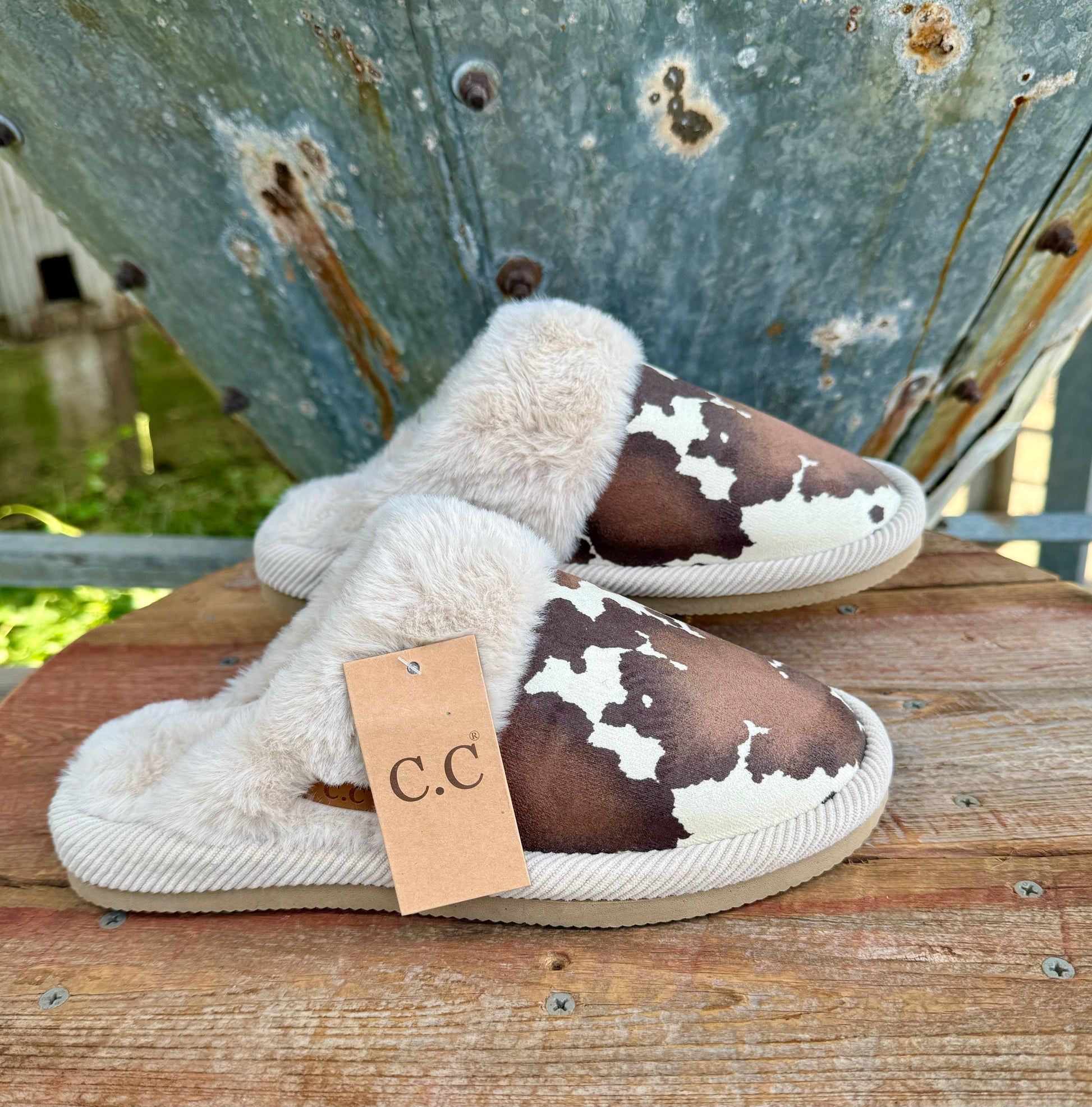 Get the best of both worlds with our Cow Print Faux Fur C.C Slippers! Keep your feet cozy and make a playful statement with these slippers featuring a fun cow print design. Treat yourself or give as a unique and fun gift for any occasion. Step into comfort and style today!