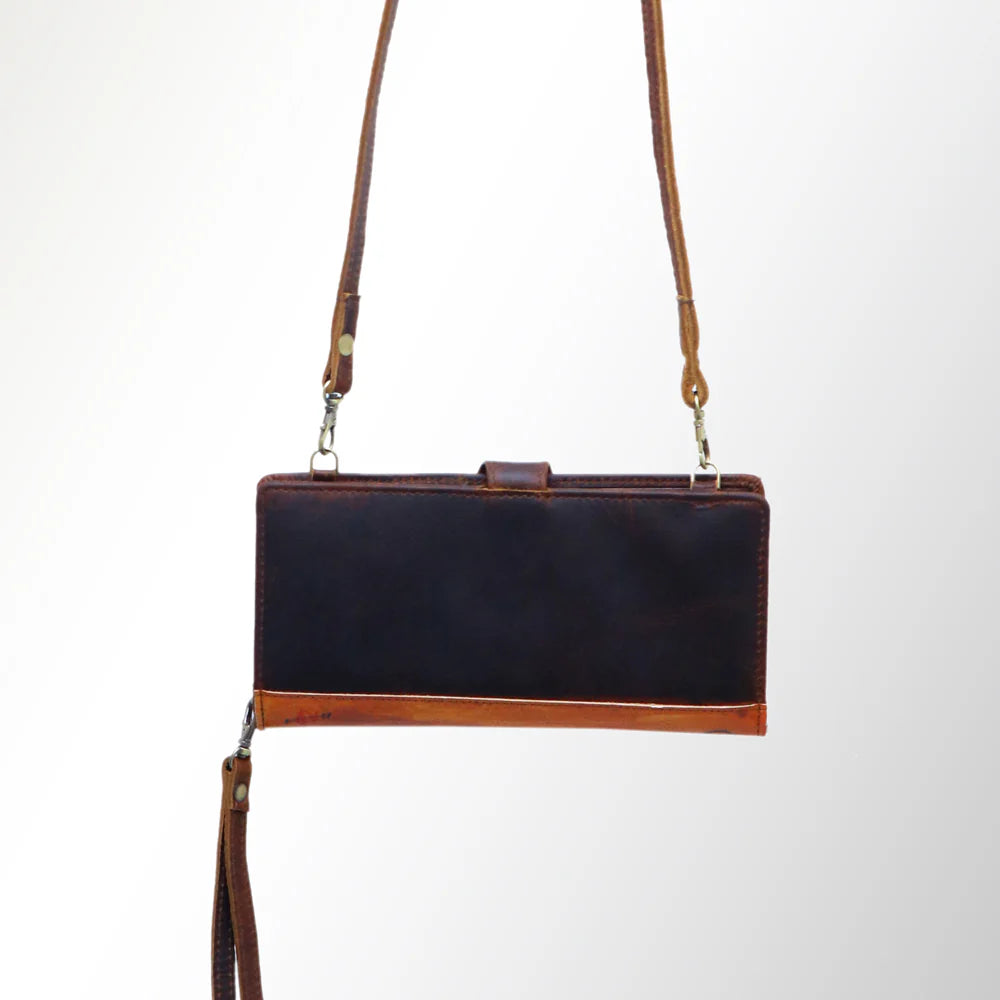 Hand Painted wallet with strap on high quality leather with magnetic snap closure!