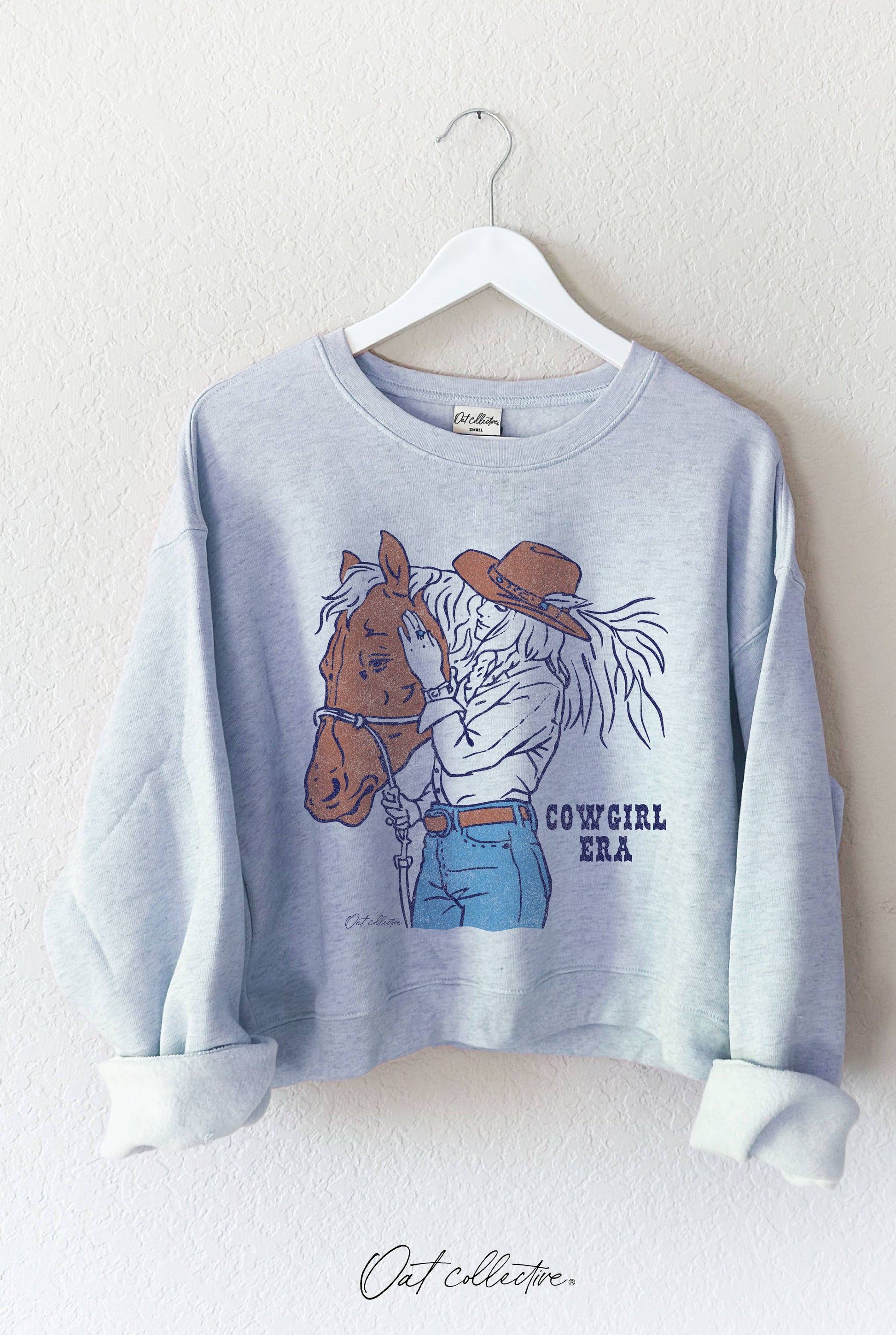 COWGIRL ERA Mid length Graphic Fleece Pullover Relaxed Fit.