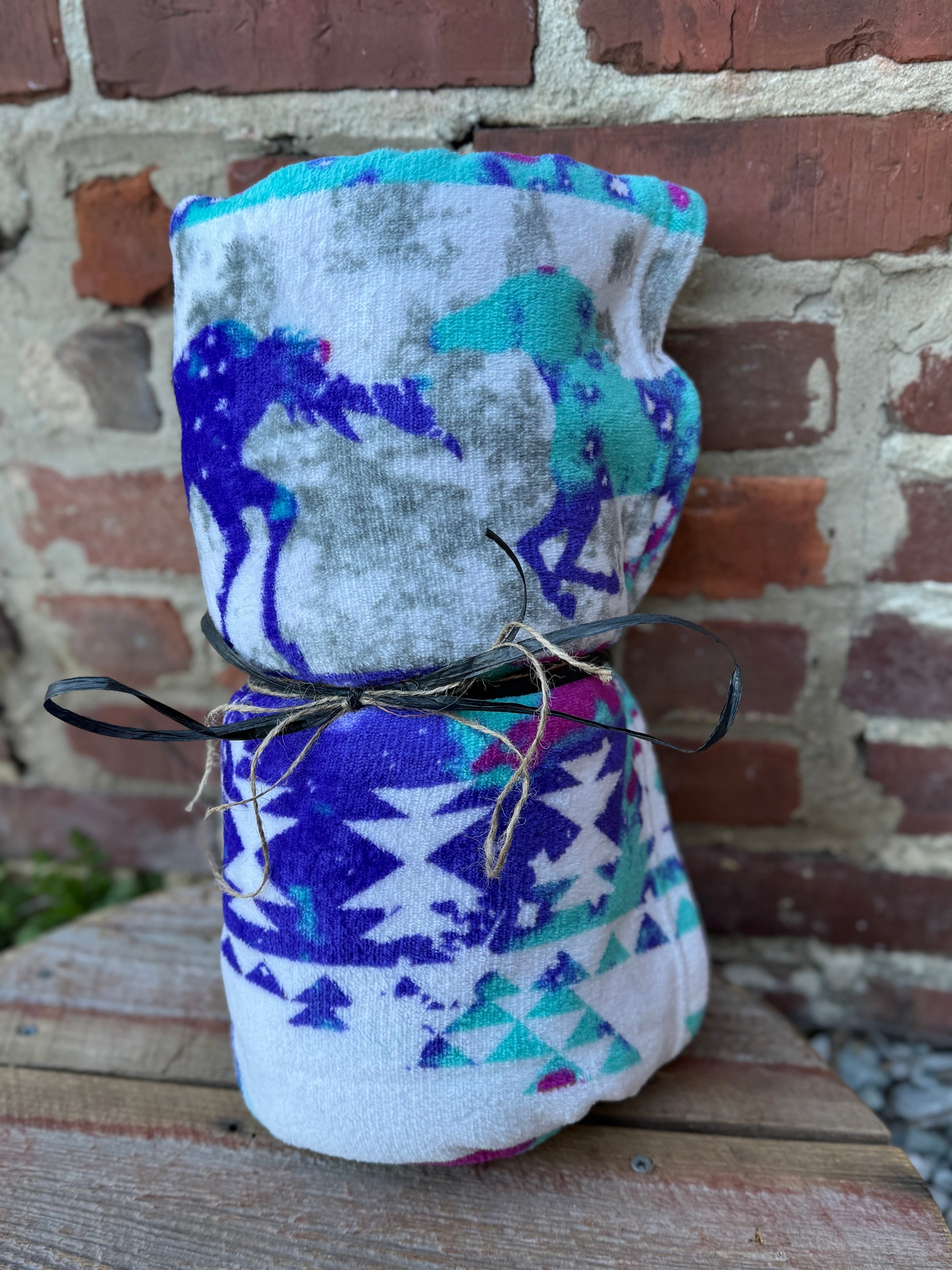 This blanket is twin sized. Super soft fleece and would make the perfect throw or accent blanket in your little cowgirl's room.