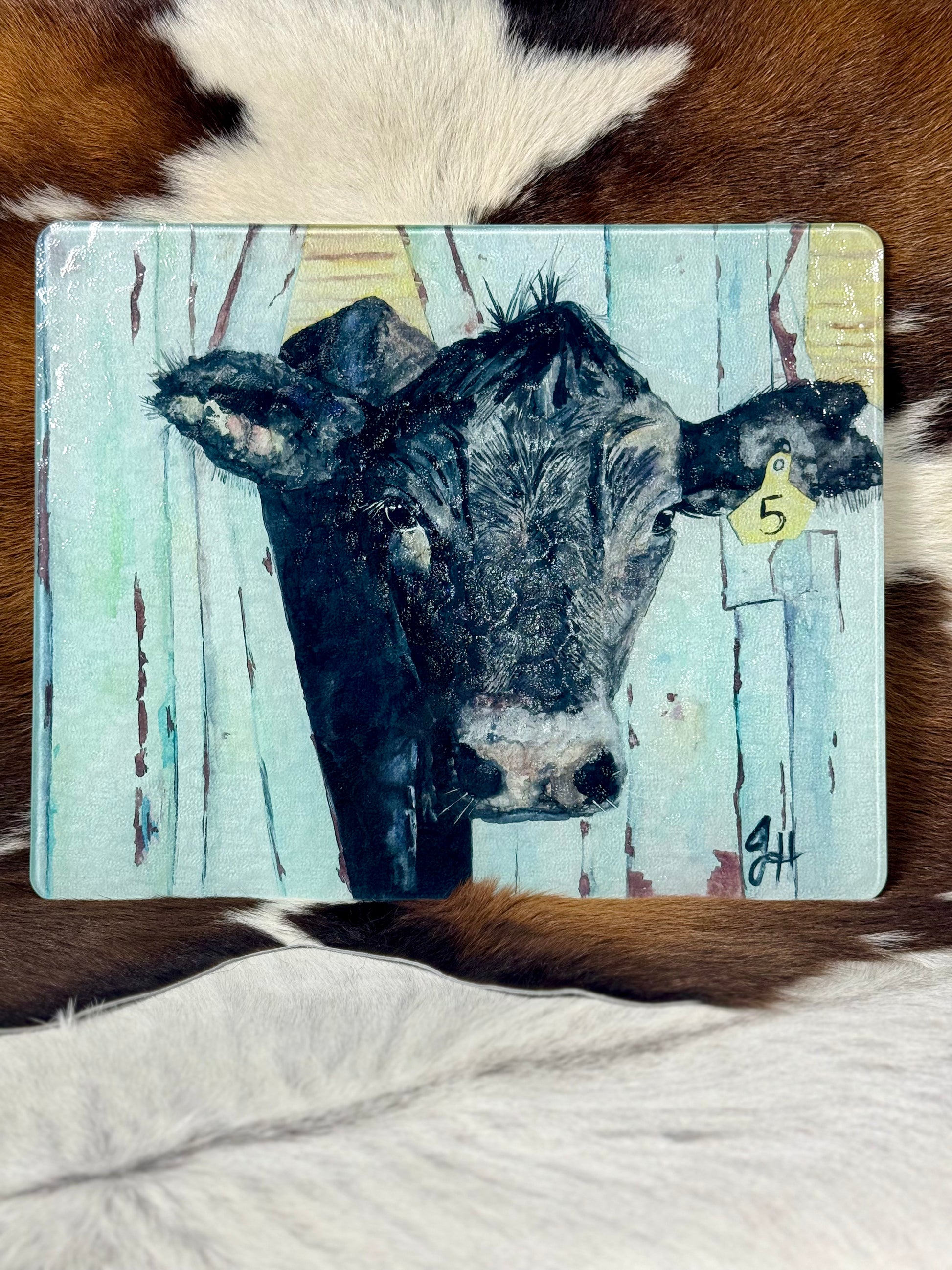 Constructed from durable glass, this cutting board boasts a high level of sturdiness. Rubber bumpers prevent slipping, ensuring a safe and steady surface for your food preparation needs. Choose from a selection of high-quality pictures.