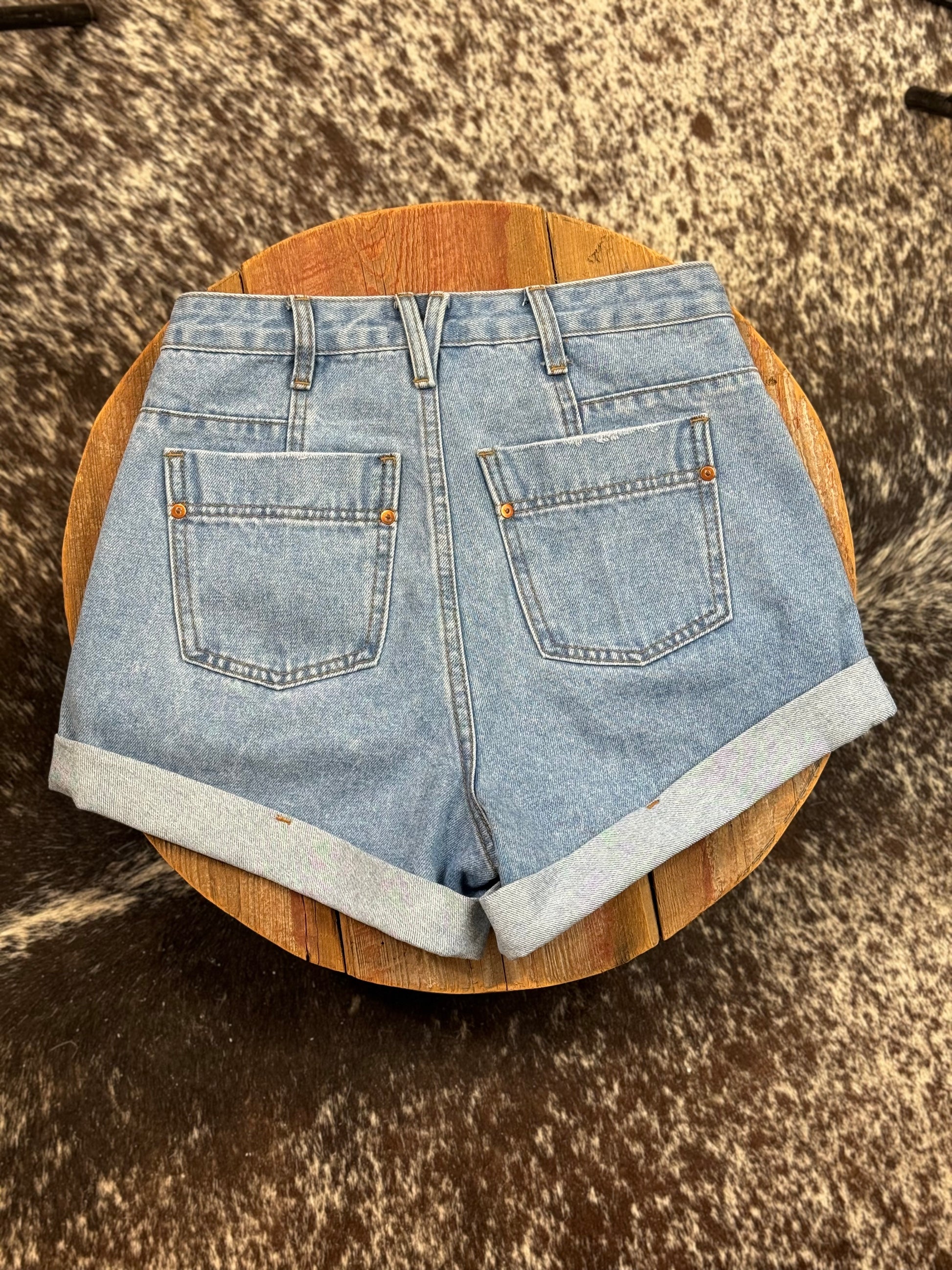 The high waist roll-up hem denim shorts are a trendy and versatile addition to your summer wardrobe. The high-waisted design adds a flattering touch, while the roll-up hem gives a casual and laid-back vibe. Made from denim, these shorts offer both style and comfort, making them suitable for various occasions. Whether you pair them with a tucked-in tee for a relaxed look or dress them up with a blouse and sandals, these shorts are a go-to option for warm weather. The classic denim material ensures durability, and the high waist provides a fashionable silhouette. Enjoy the comfort and style of these shorts throughout the sunny season.