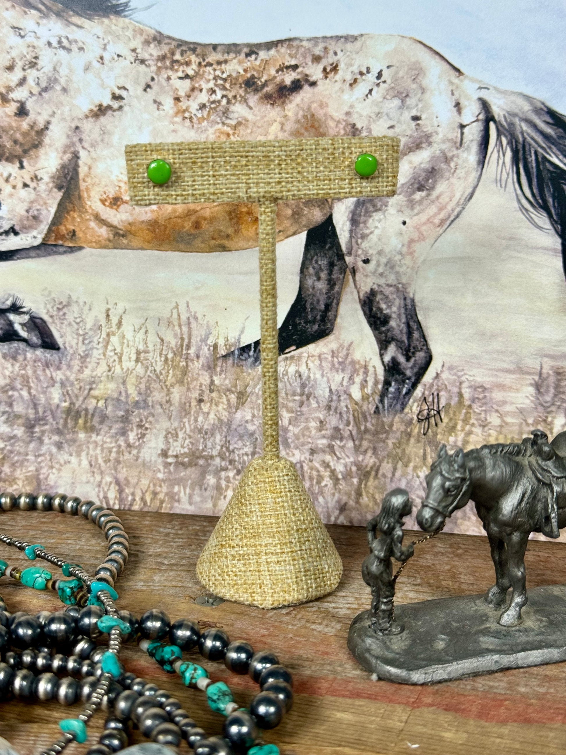 Authentic green turquoise stud in sterling silver. Zuni Handmade.