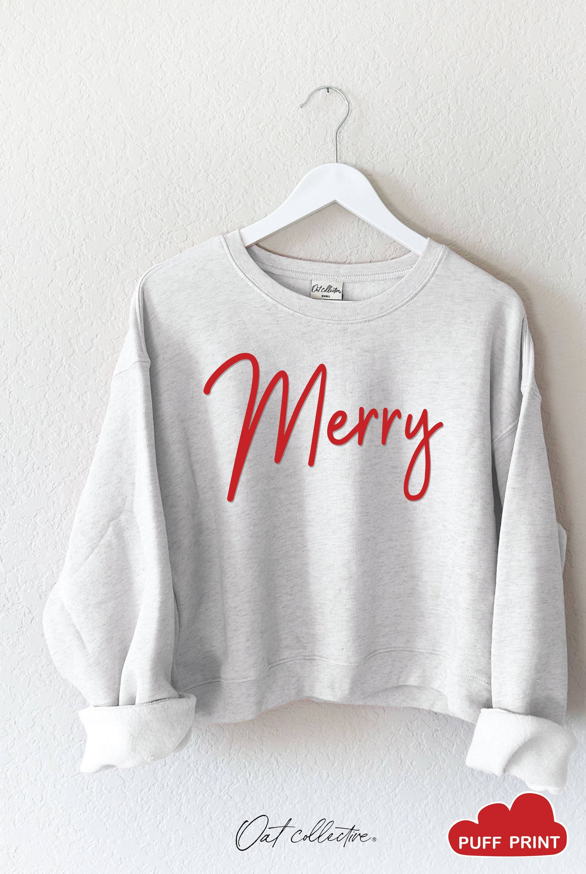 MERRY PUFF Mid length Graphic Fleece Pullover Relaxed Fit.