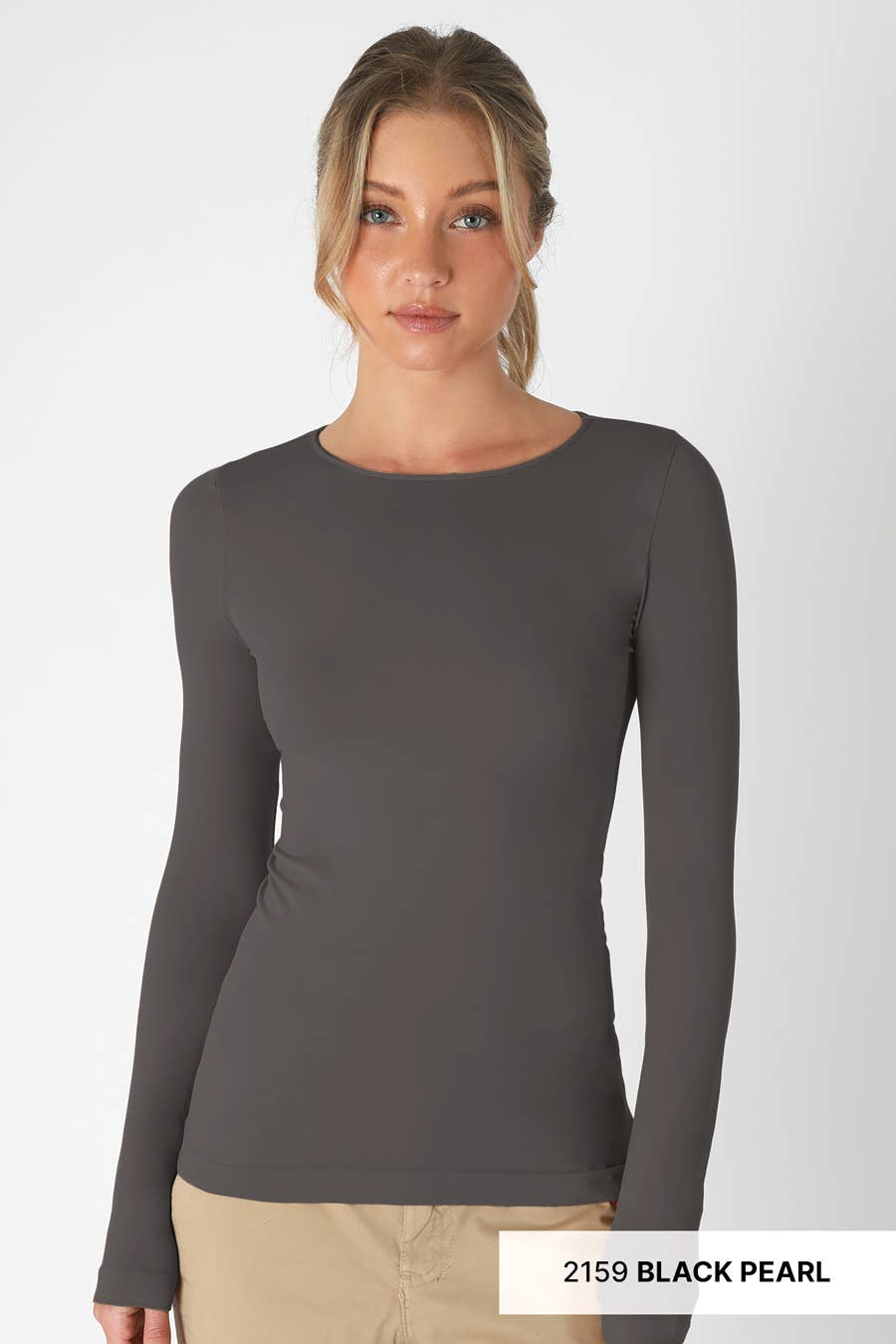 Seamless plain jersey long sleeve top.