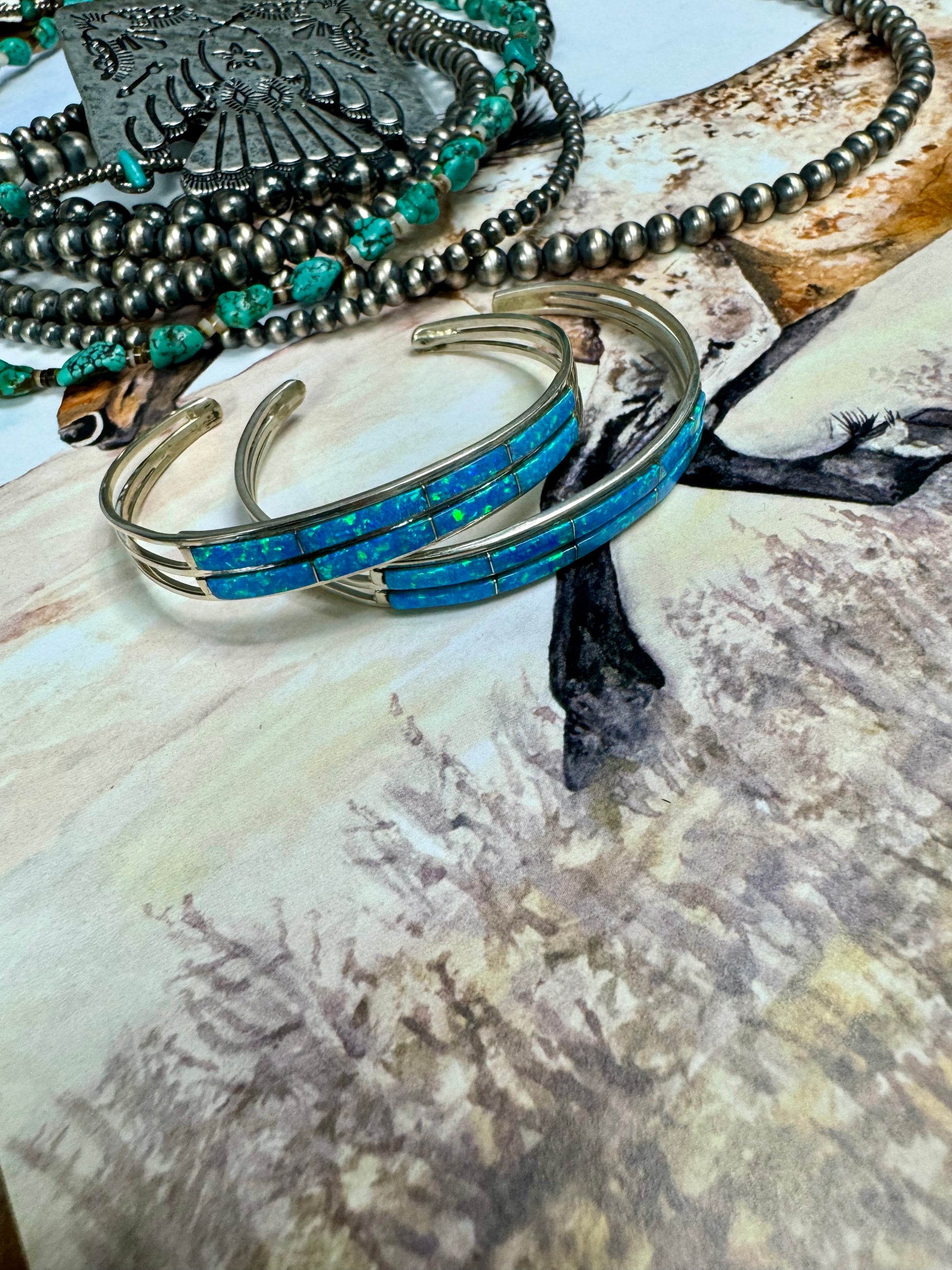 Sterling Silver and Genuine Opal Bracelet. Navajo HANDMADE. Size Adjustable.