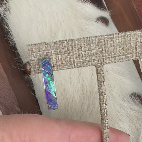 Sterling silver and genuine opal hoop earrings. 2.5 mm across the hoop. Each piece is handmade and unique. The natural opal stones tend to pick up colors they are around.