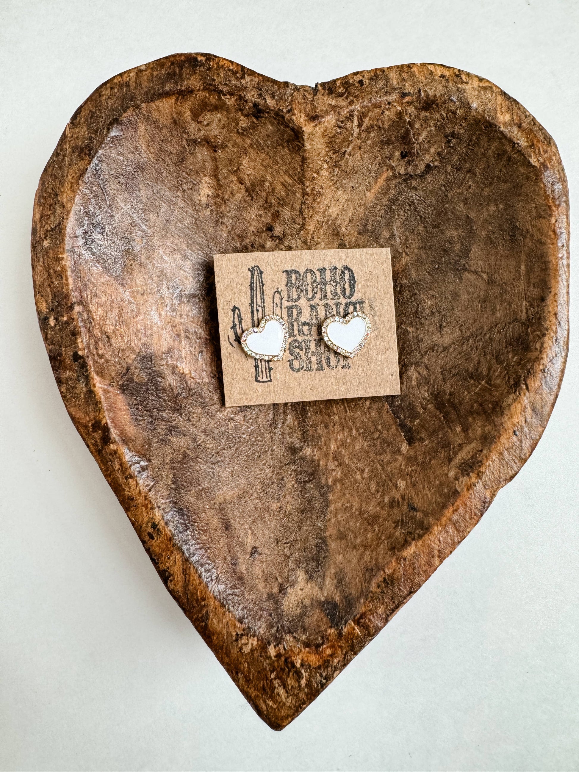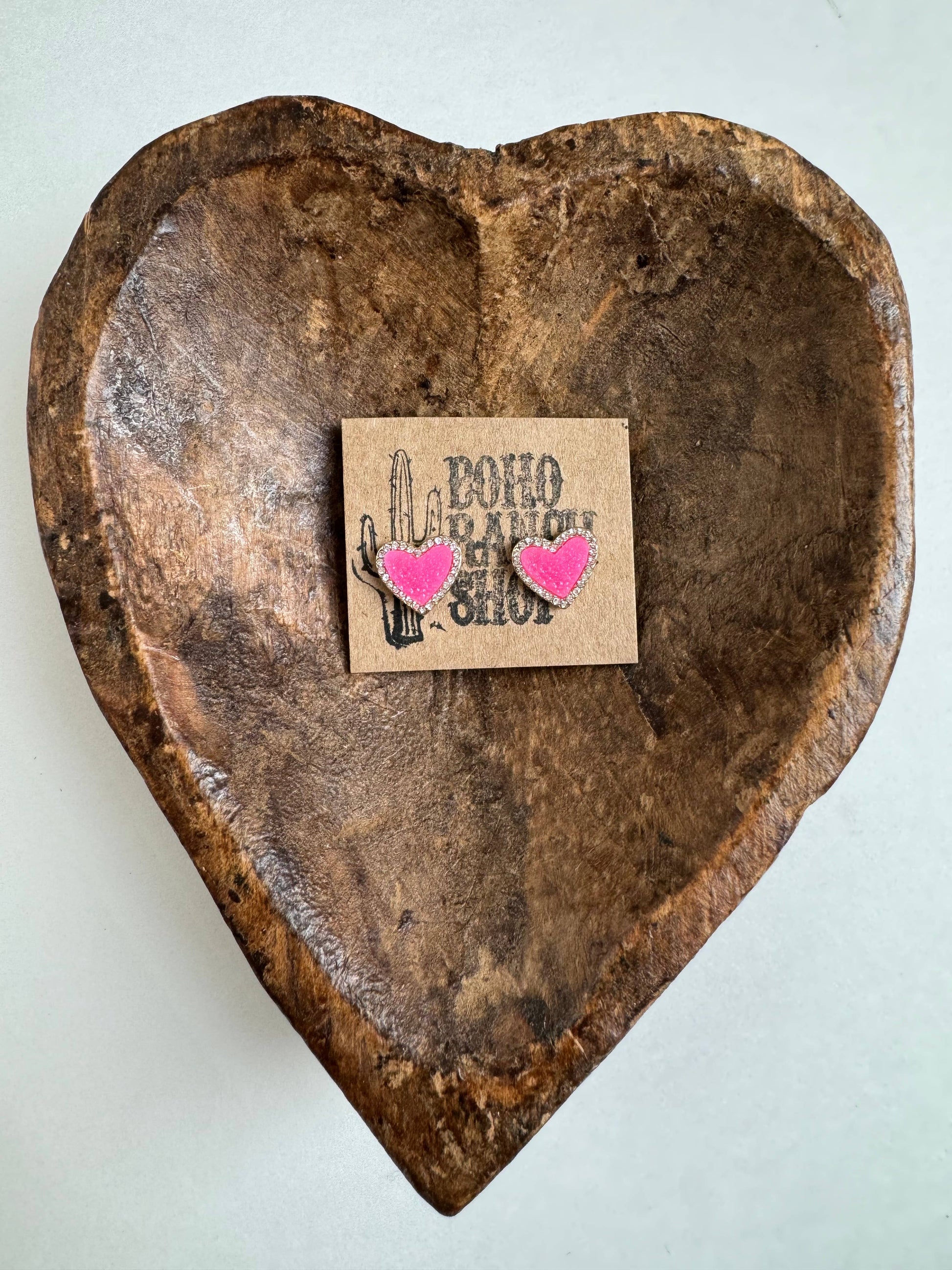Rhinestone Heart Studs - Heart Druzy Stud Earrings