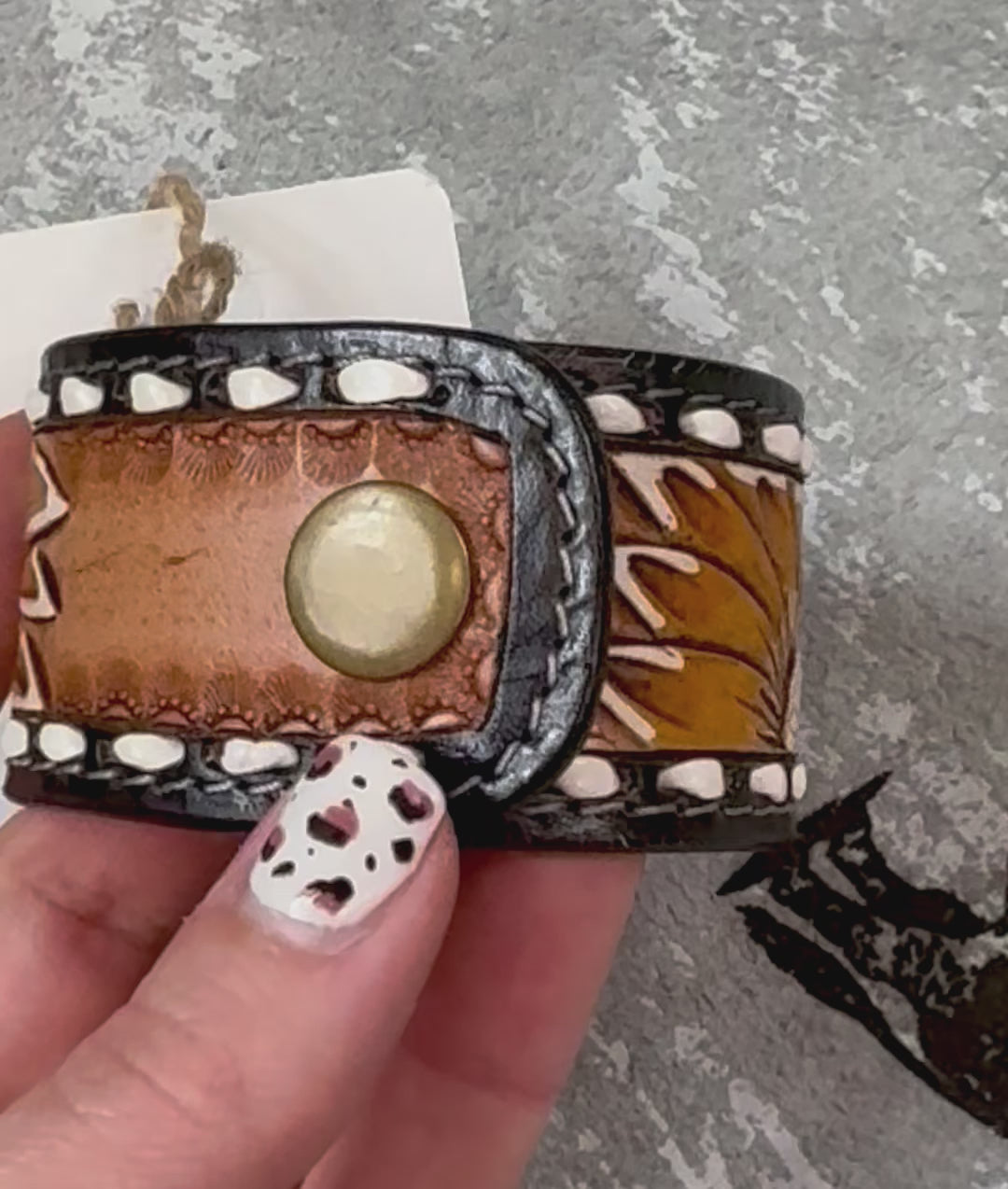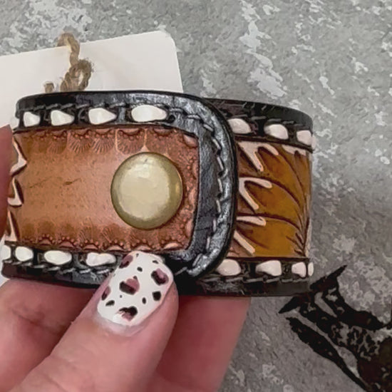 Western style hand-tooled vegetable tanned cowhide leather cuff bracelet is hand made by American Darling.