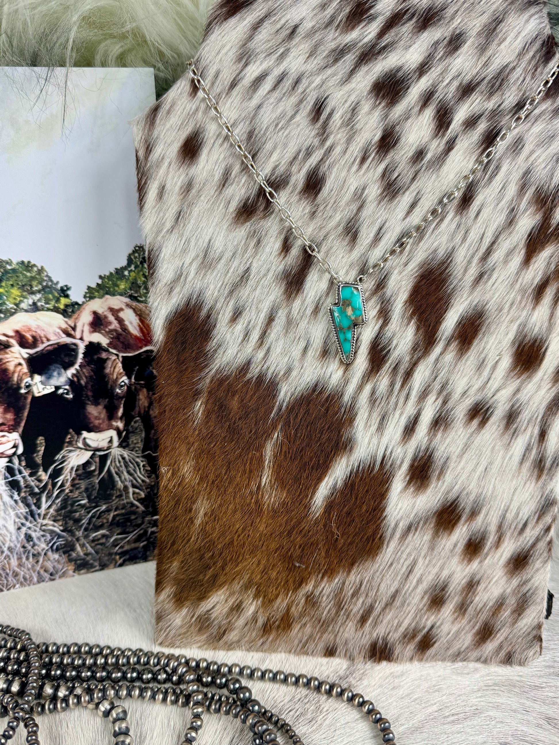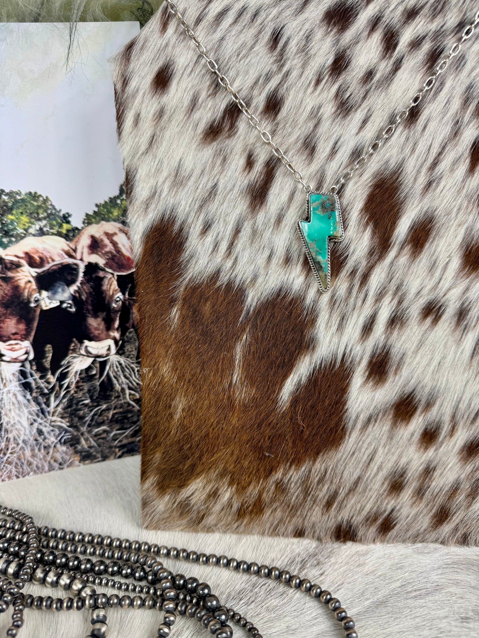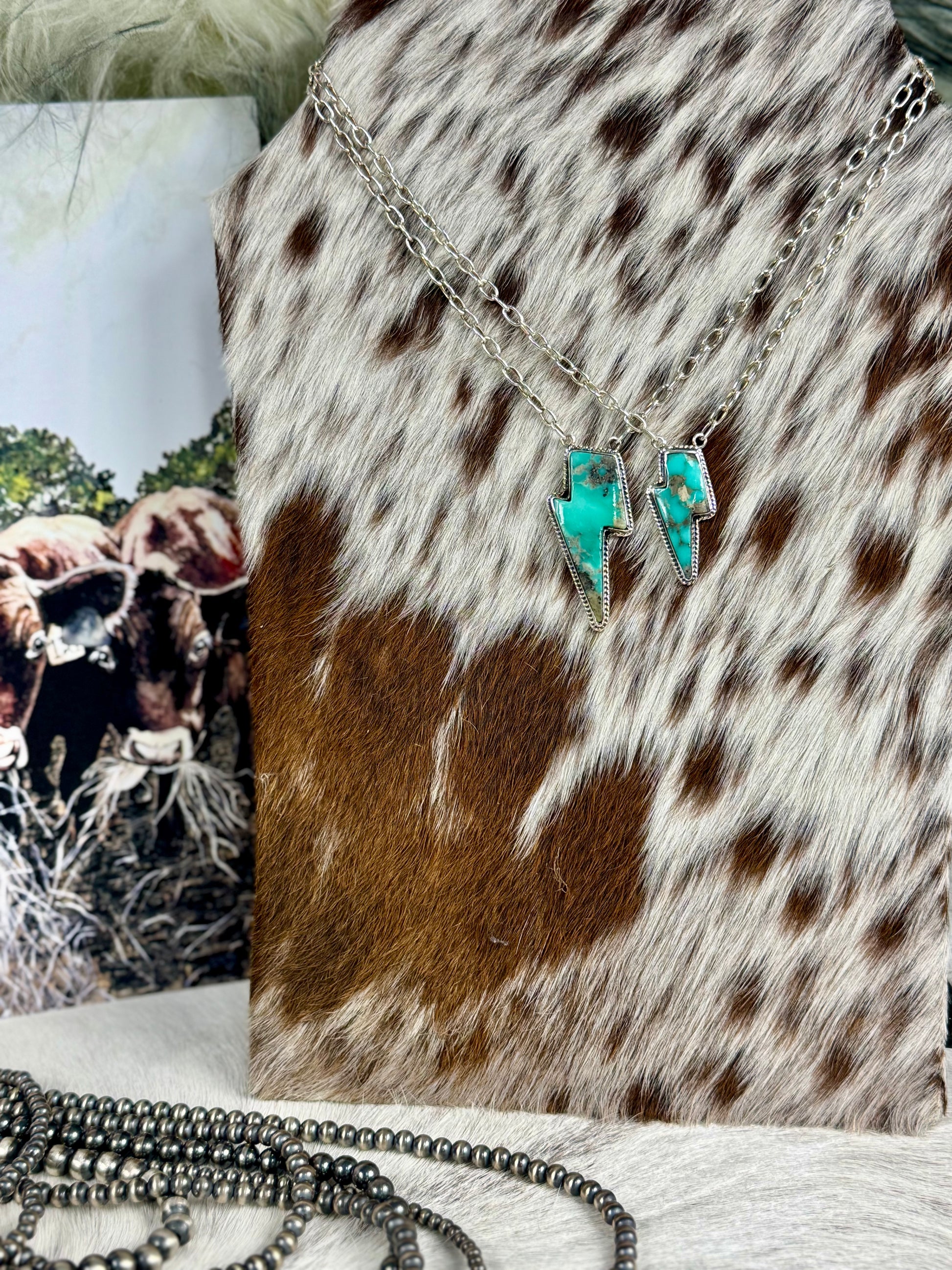 Handmade with Sterling Silver, The Bolt Necklace features stunning Kingman Turquoise stones. Customize your look by choosing from two sizes or layer both for a flawless combination.