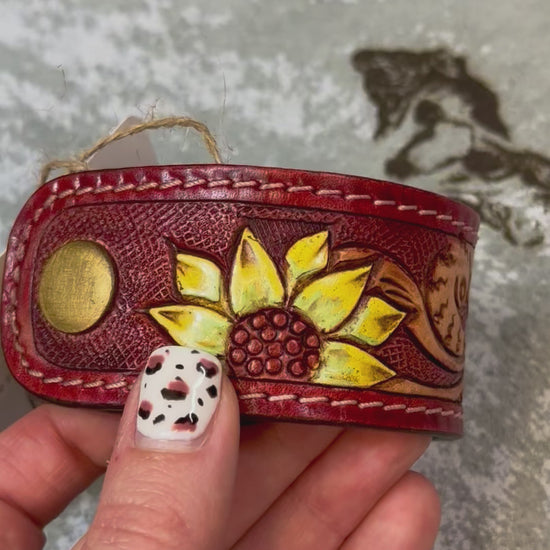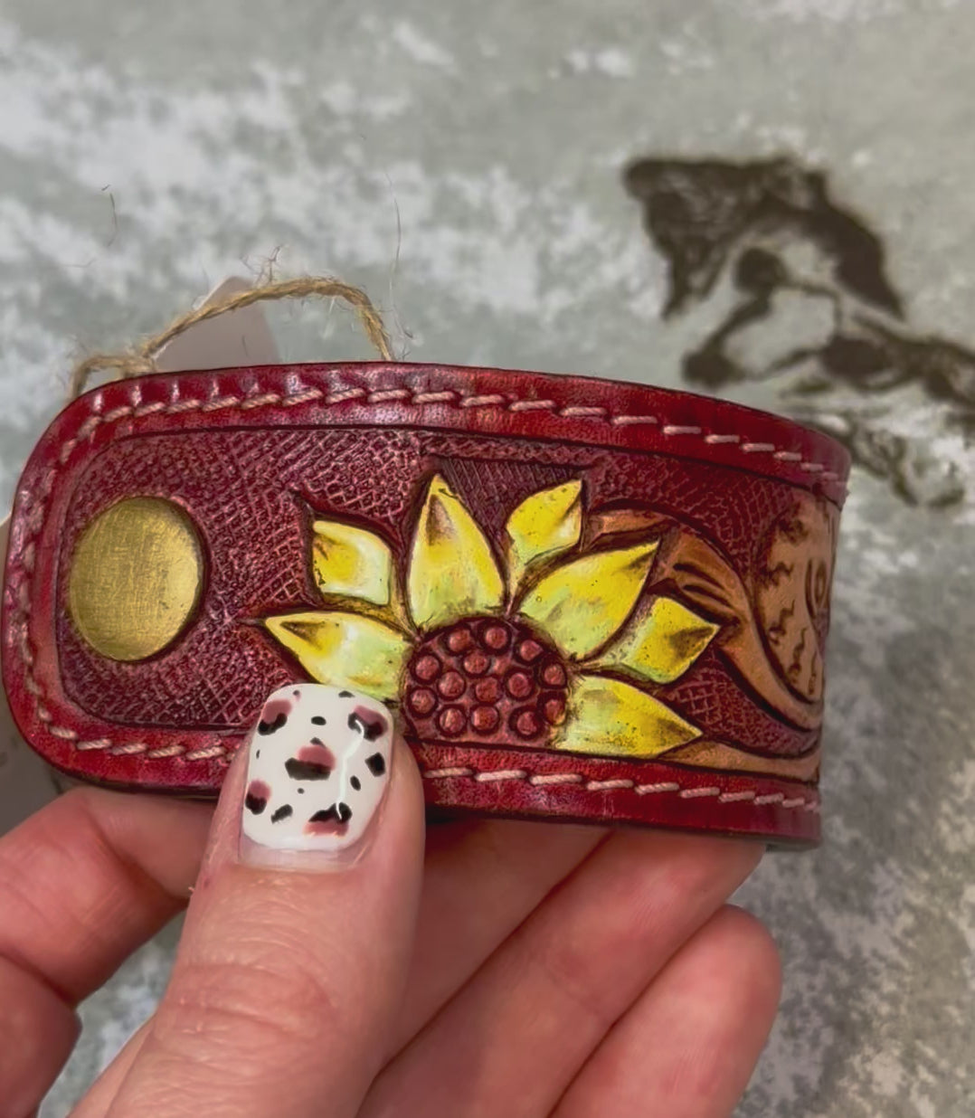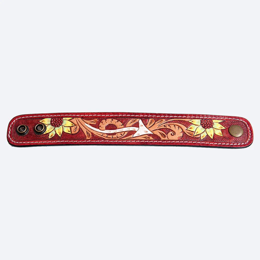 Western style hand-tooled vegetable tanned cowhide leather cuff bracelet is hand made by American Darling.