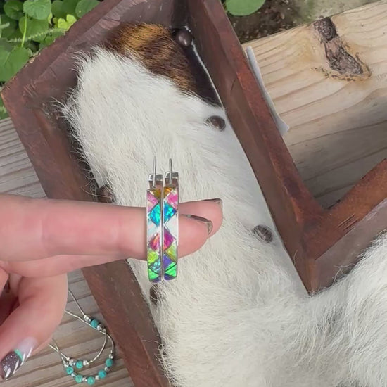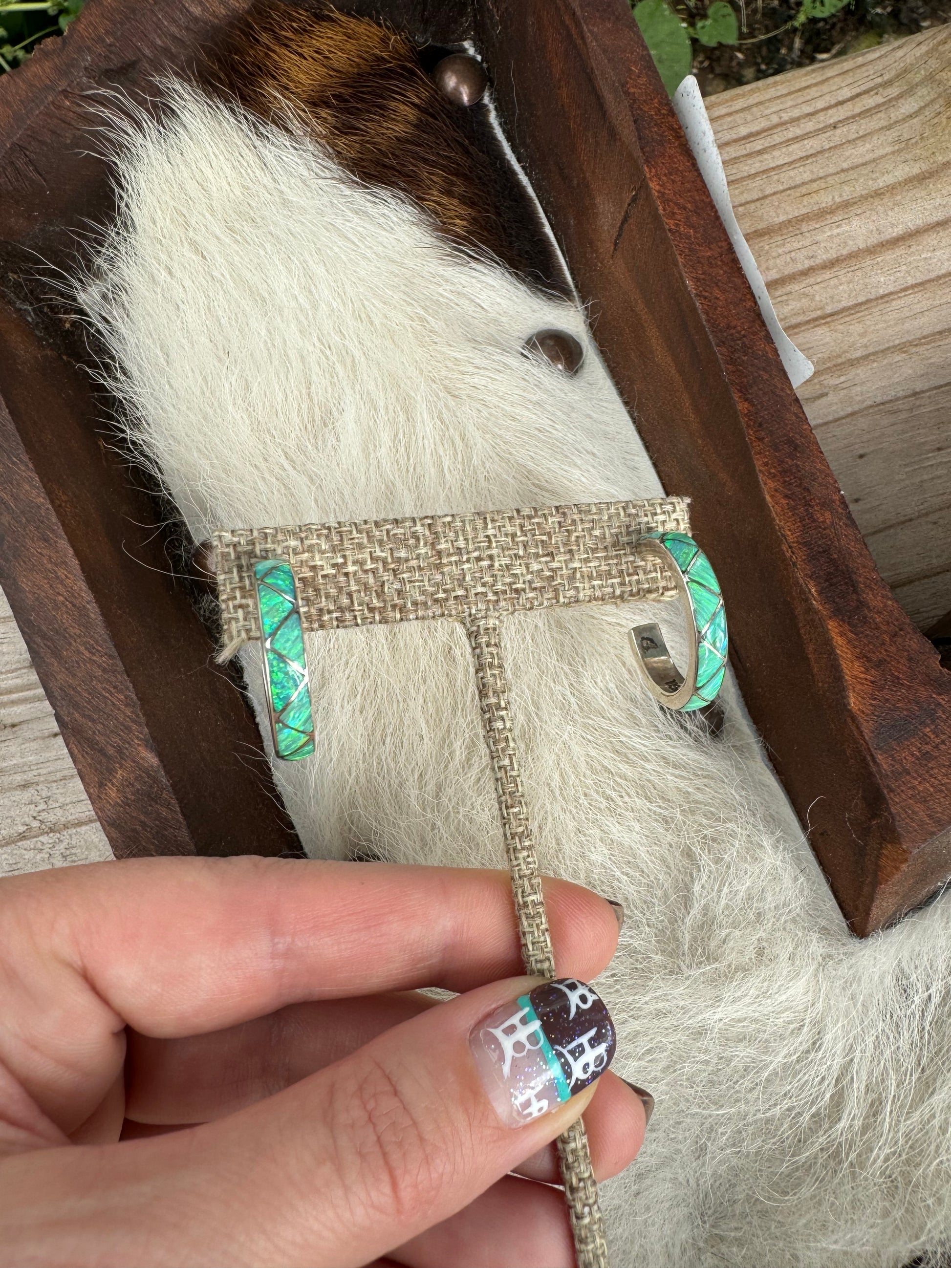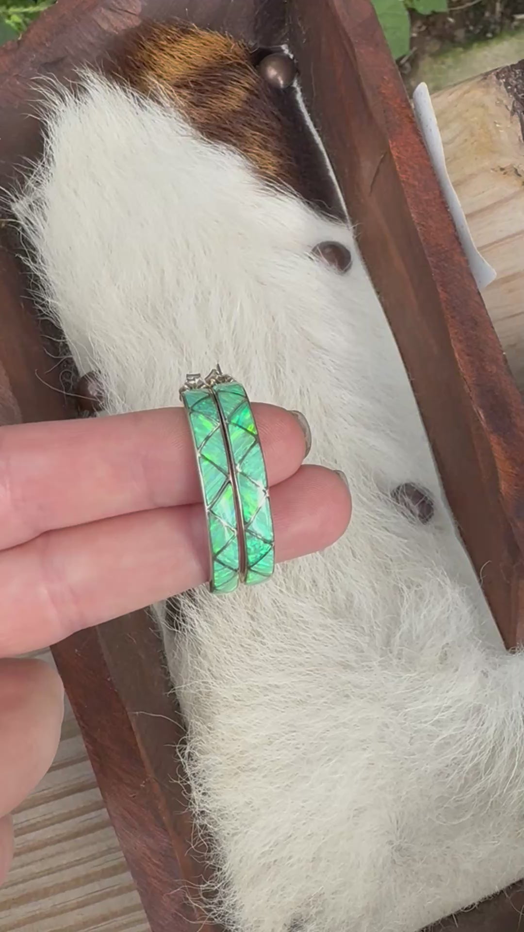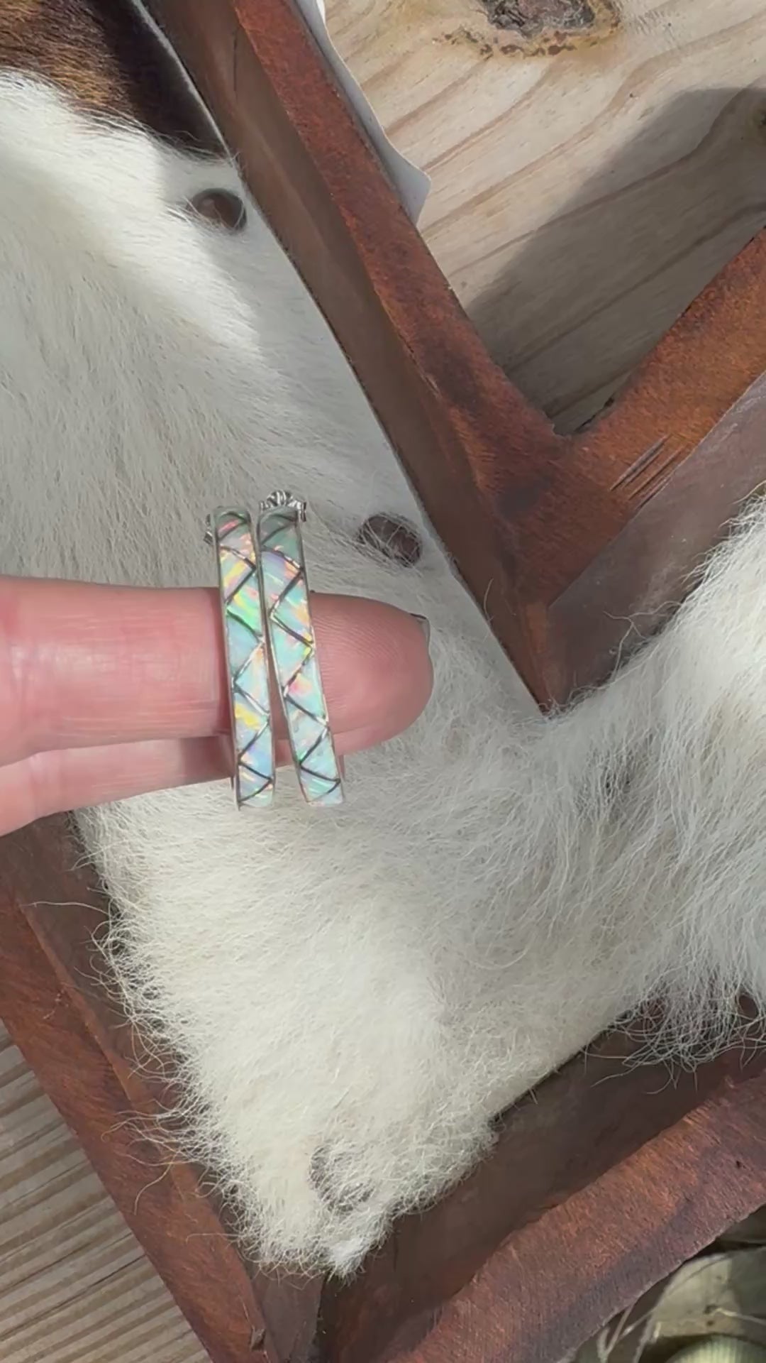 Sterling silver and genuine opal hoop earrings. 3.5 mm across the hoop. Each piece is handmade and unique. The natural opal stones tend to pick up colors they are around.