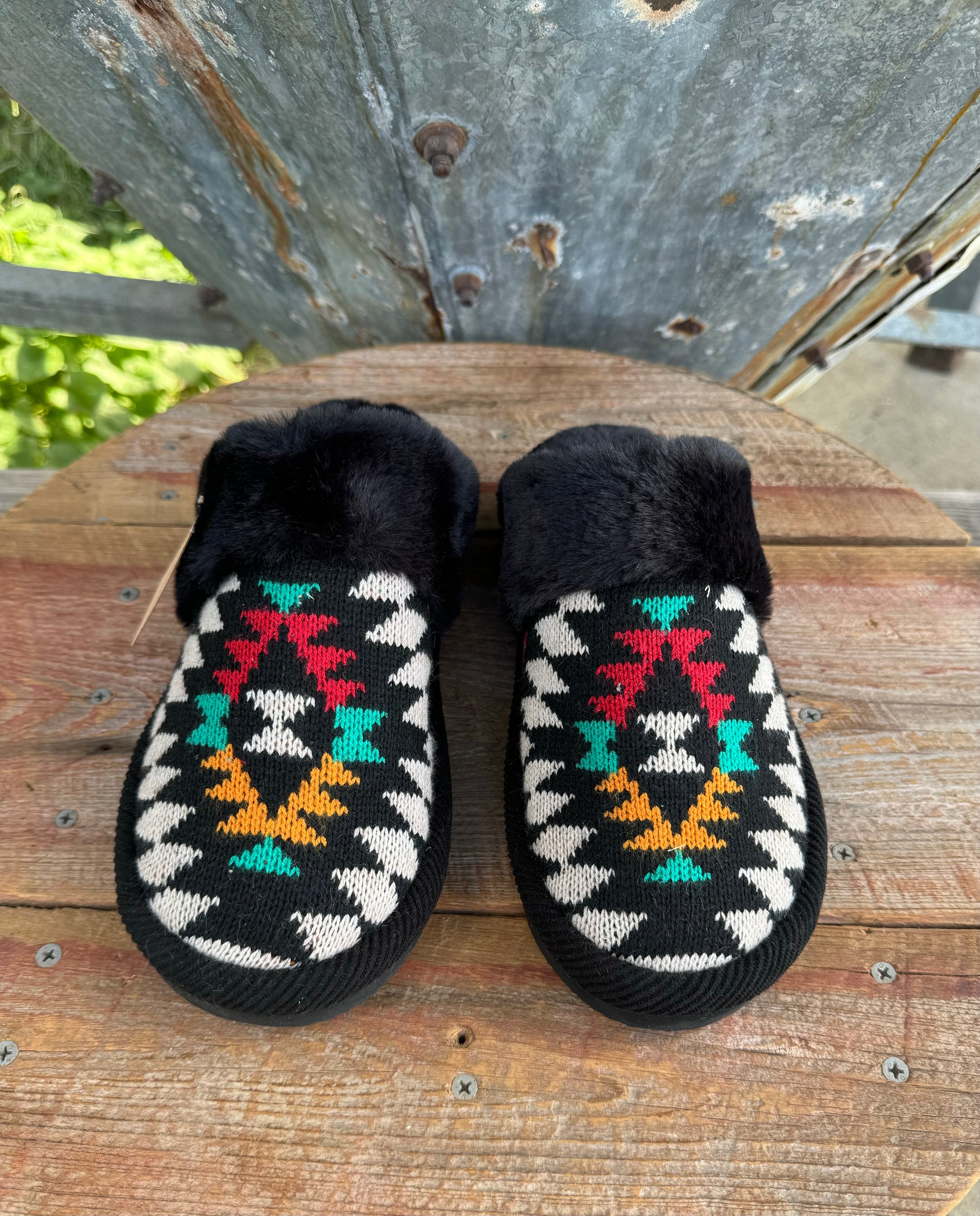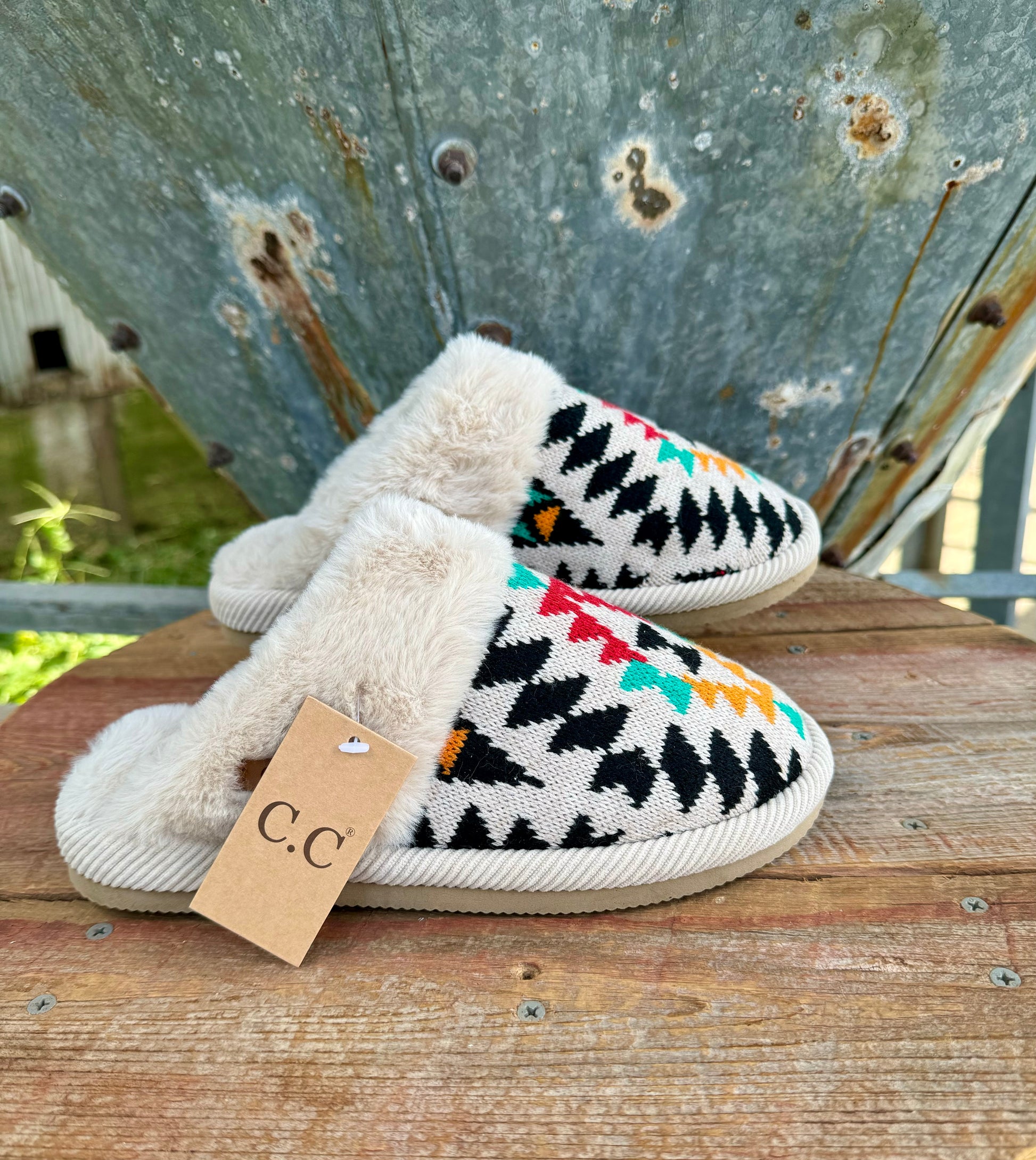 Snuggle up in style with our Aztec Patterned Faux Fur C.C Slippers! These cozy slippers feature a trendy Aztec pattern and are made with soft faux fur for ultimate comfort. Perfect for gifting yourself or a friend, these slippers are a fun addition to any wardrobe.