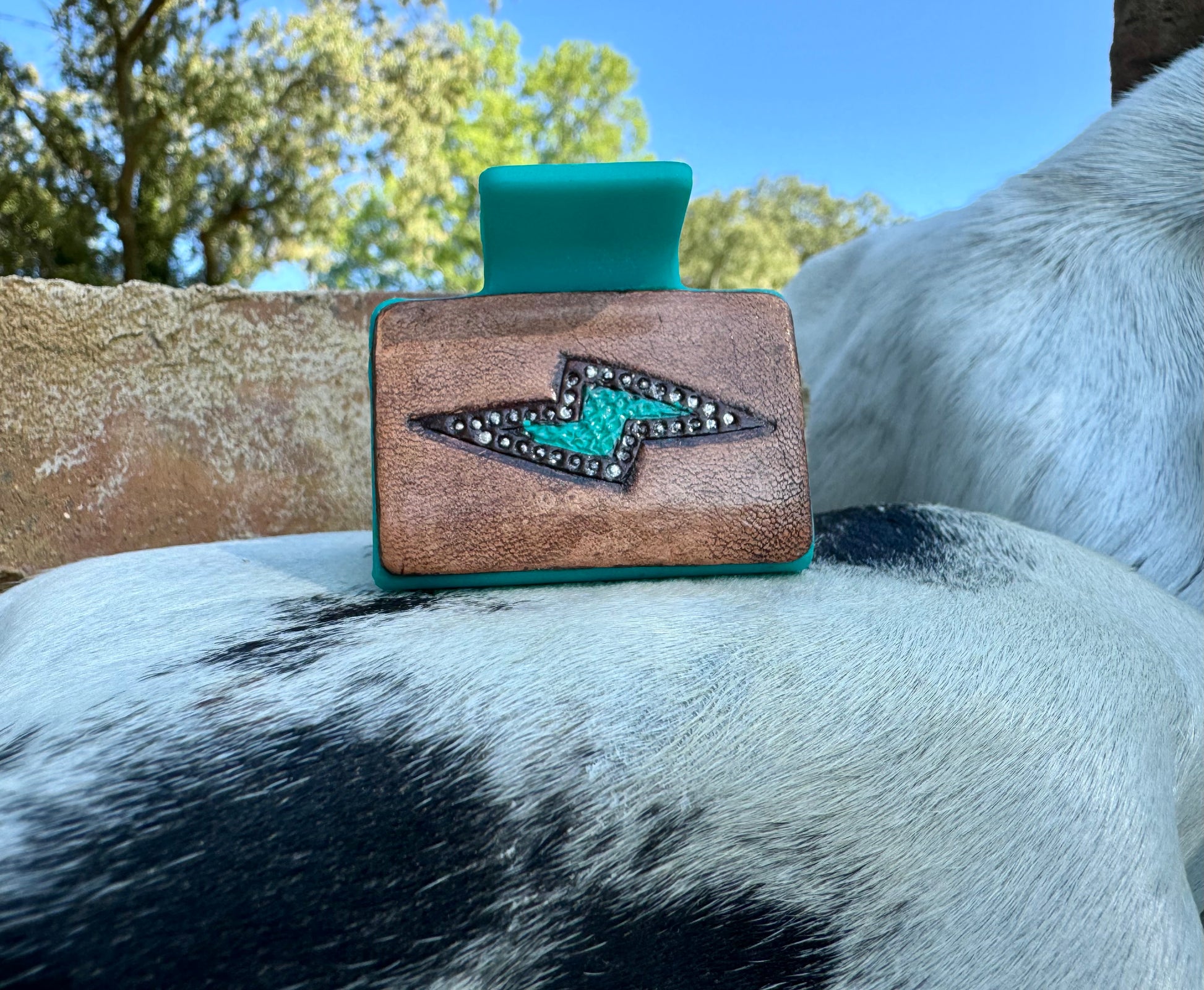 Leather hand tooled 2 in claw clip. Perfect size for half pony tail.