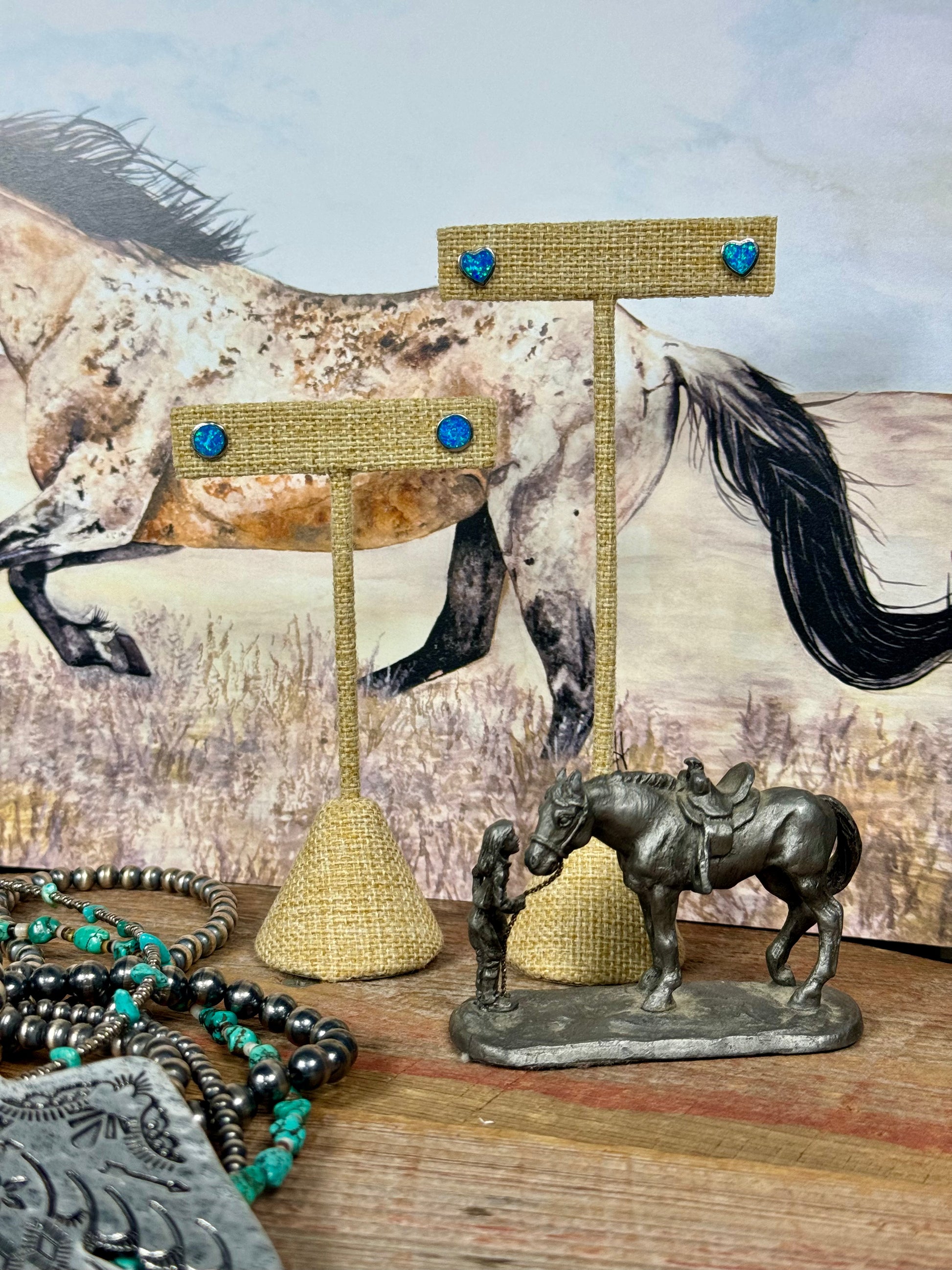 This product features a genuine opal with a beautiful blue hue, set in sterling silver for a lightweight design that is perfect for sensitive ears. Choose from a circle or heart shape.