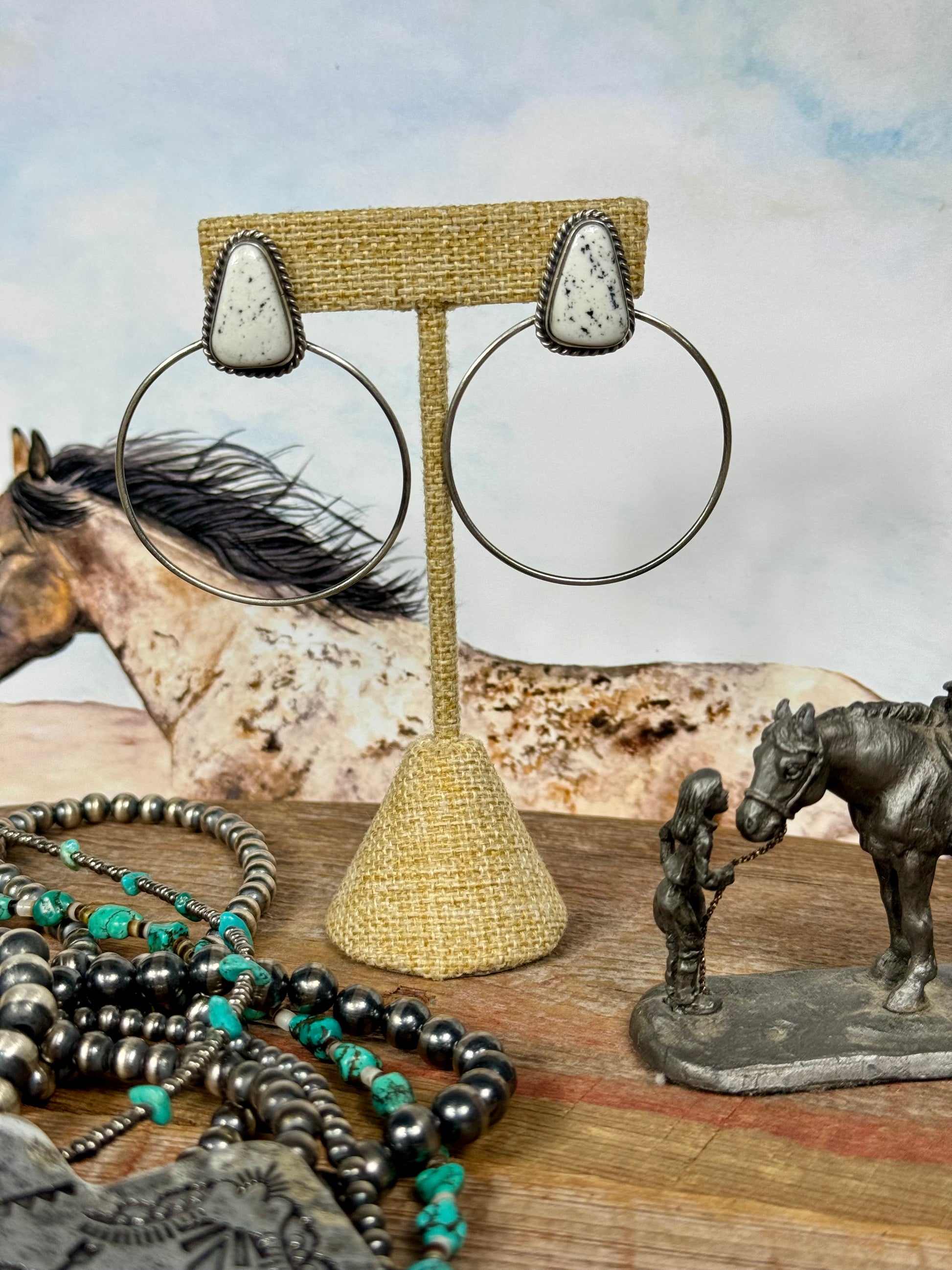 Navajo HANDMADE sterling silver and genuine White Buffalo Hoops.